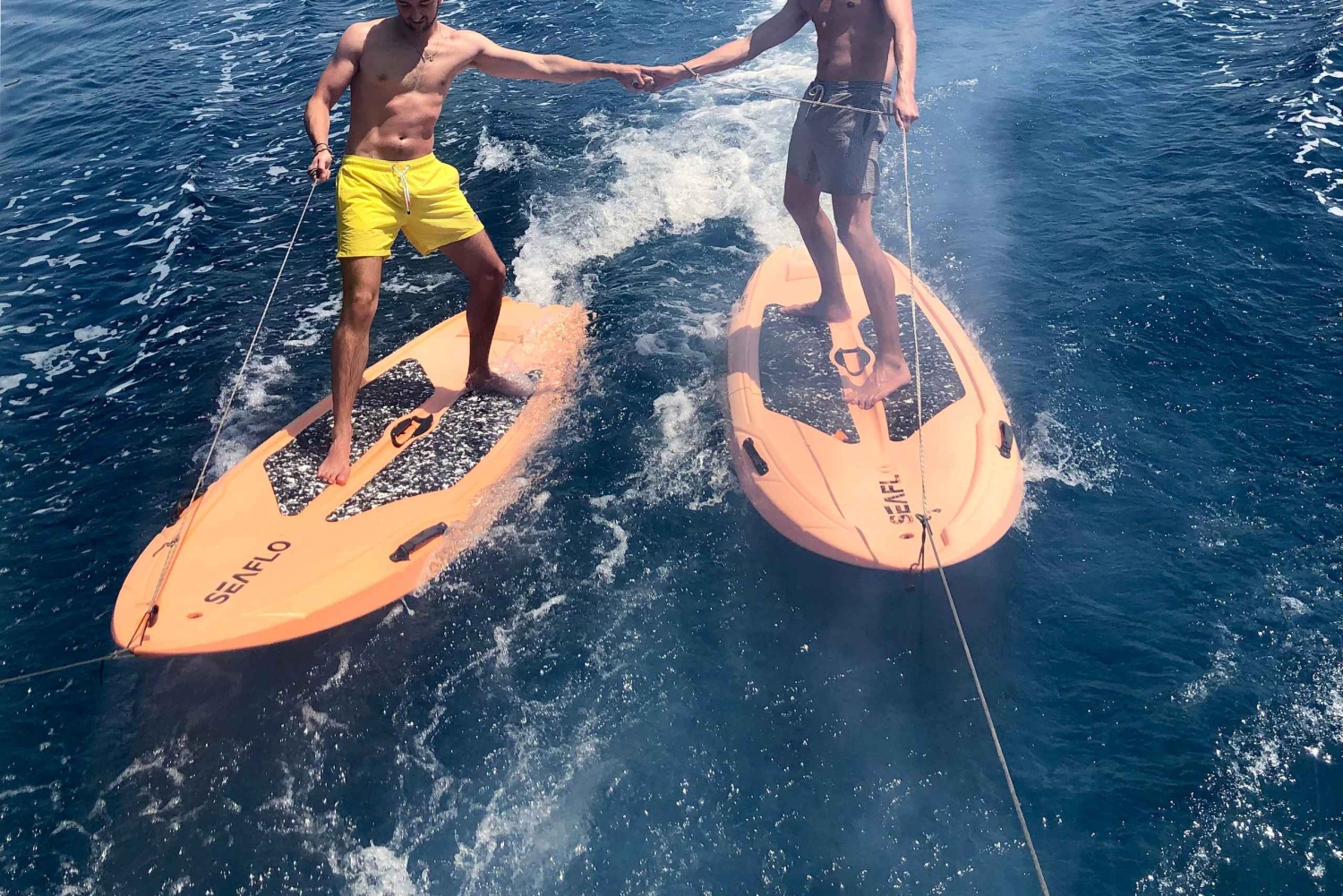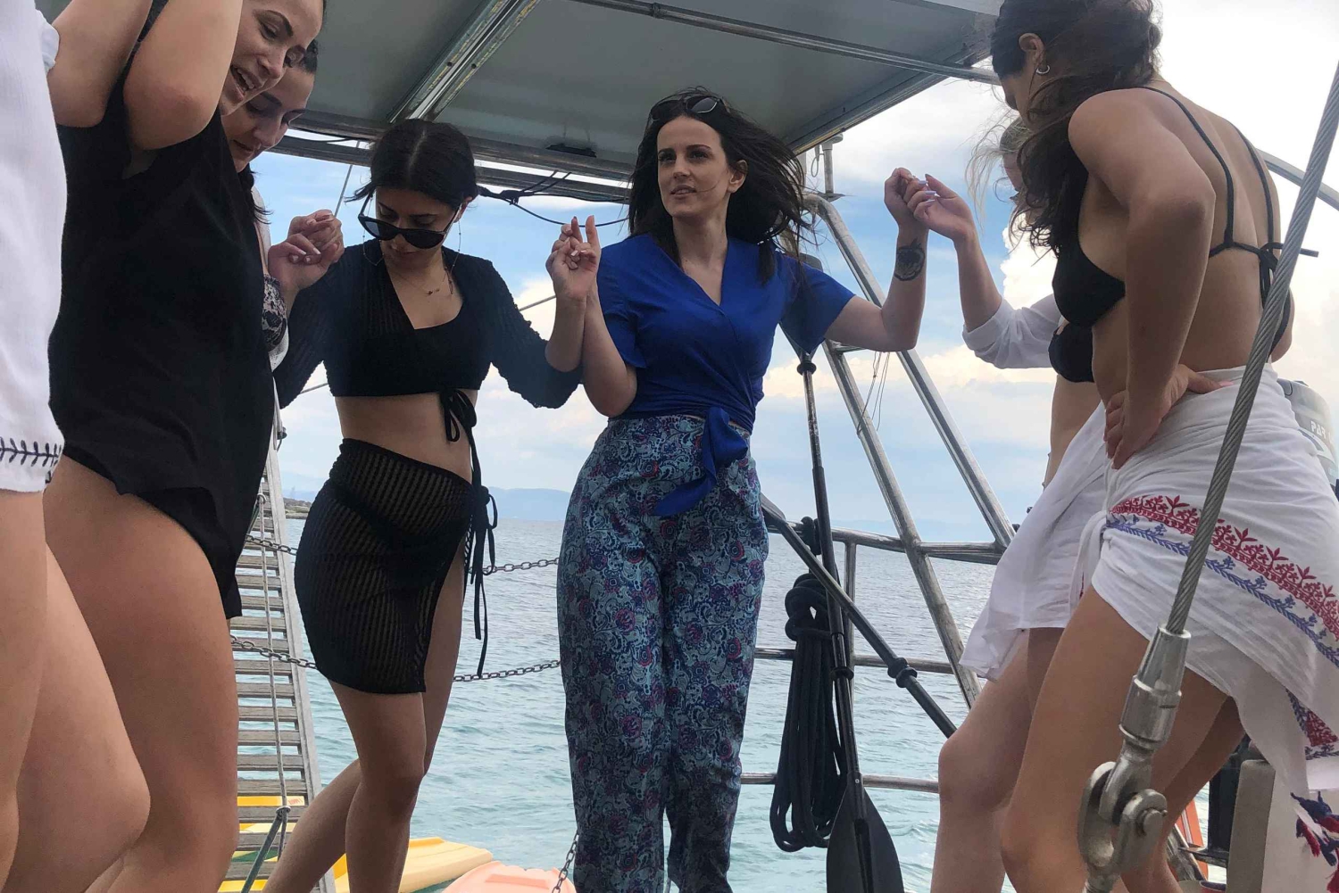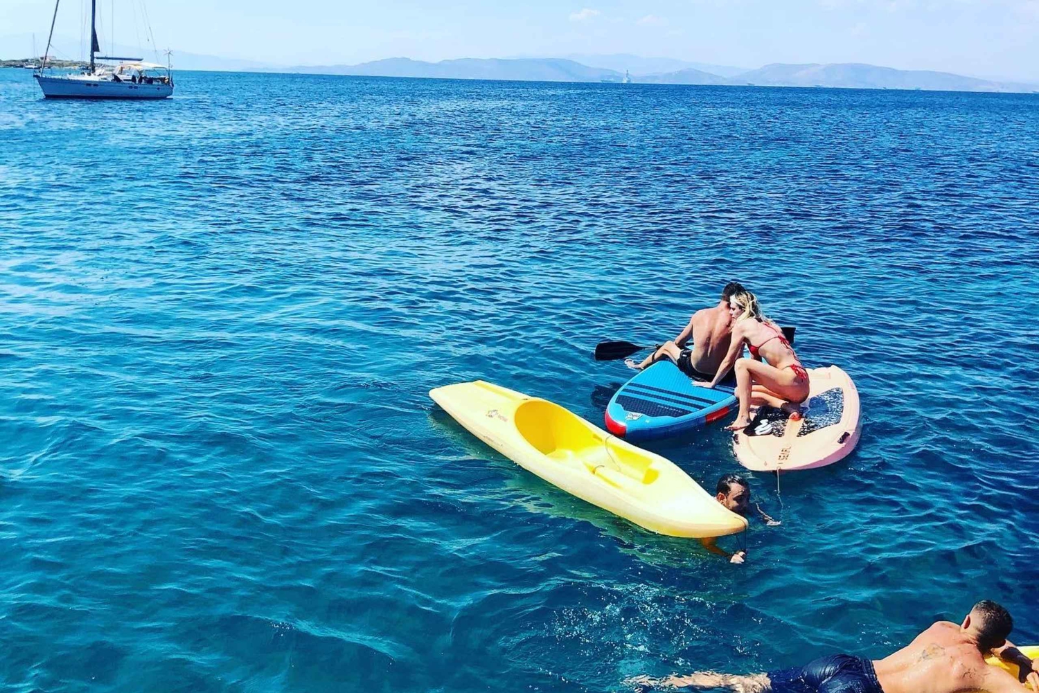 En privat sejladsoplevelse for en gruppe på op til 24 personer Påhængsmotor og jolle Cockpithøjttalere med aux-indgang, USB og Bluetooth Puder i cockpittet Snorkeludstyr i tilpassede størrelser Nødvendigt sikkerhedsudstyr Turplanlægning med tips og forslag Karaoke 3G-internet om bord Kaptajn og besætning SUP-paddleboard Oppustelige kanoer/kajakker Græsk mad, vin, øl LæskedrikkeImportant Information