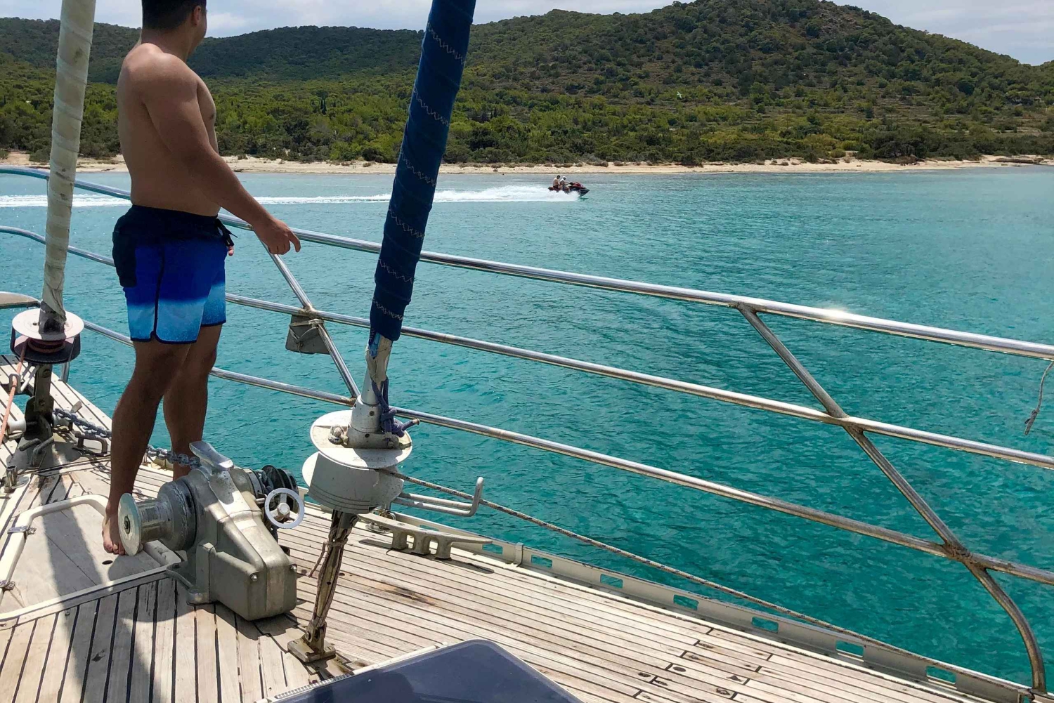 Sæt sejl på denne skræddersyede sejltur om bord på en klassisk 65 fods sejlbåd, der kan rumme op til 24 gæster. Nyd det magiske blå hav og solen på de græske øer, mens du snorkler, dykker, svømmer, solbader og har det sjovt. Uanset om du er et par, en familie eller en gruppe venner, er denne oplevelse perfekt for alle, der elsker havet og eventyr. I sejler fra Athen og nyder privatlivets fred og den komfort, som yachten tilbyder, når I sætter sejl og kaster anker ved den fantastiske ubeboelige ø Idrousa med krystalklart vand. Nyd et traditionelt græsk måltid med en flaske vin eller øl, og giv dig selv en unik oplevelse. Hvis du føler dig ekstra eventyrlysten, kan du blive sejler for en dag og lade kaptajnen lære dig det grundlæggende i sejladsens kunst. Kontakt os venligst før du booker.Includes