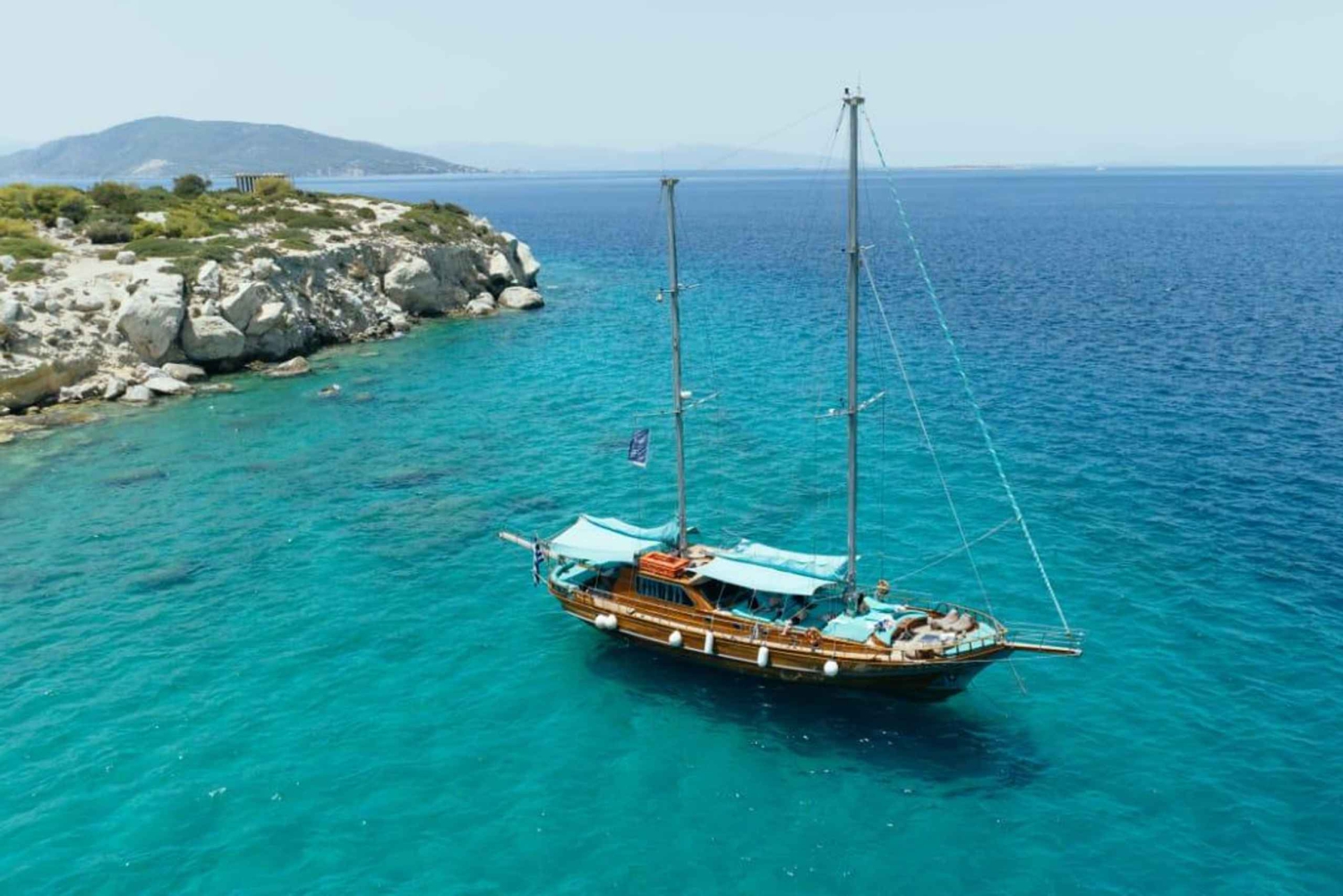 147 AnmeldelserOplev Agistri, Moni og Aegina på en heldags sejltur med svømning, snorkling, øbesøg og en græsk frokostbuffet med vin og øl.