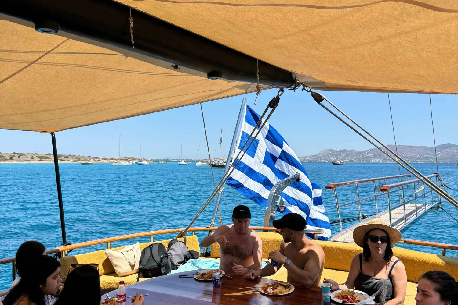 Velkomstkaffe, te, juice, vand og lette snacks Stop ved Agistri og Aegina Stop for at svømme og solbade Frisklavet græsk frokostbuffet med særlige kostmuligheder Ubegrænset hvidvin, øl og sodavand Brug af snorklingudstyr og svømmeringe Professionelt og certificeret besætning ombord Komfortable skyggefulde siddepladser på dækket Gratis wi-fi ombordEasy cancellation