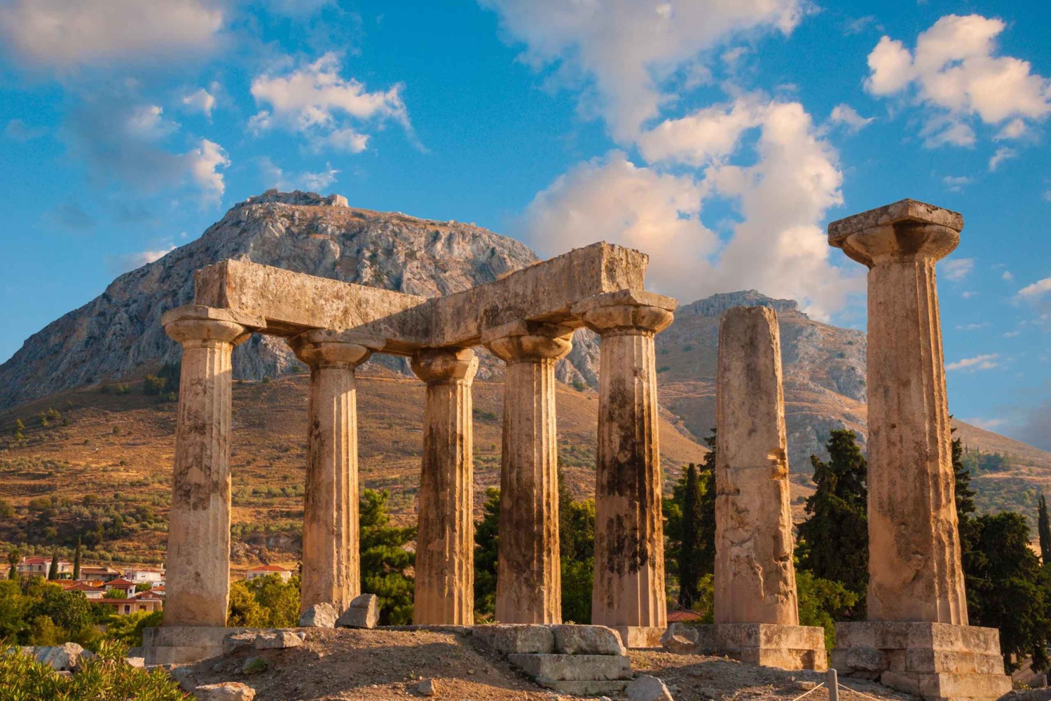 Følg i Sankt Paulus' fodspor. Beundre de steder, hvor Sankt Paulus prædikede Guds ord og forandrede åndeligheden for altid. Besøgende kan udforske Bema, den platform, hvor Paulus forsvarede sin tro foran romerske embedsmænd, og den byzantinske kirke, der bærer hans navn. Stop ved den historiske havn Kenchreai, hvor Paulus fik klippet sit hår, og besøg Diolkos, hvor både blev trukket over Korinths fastland. Udforsk den majestætiske borg Acrocorinth, Akropolis i det gamle Korinth. Byen, der overses af den majestætiske fæstning Acrocorinth, kombinerer historie, spiritualitet og fantastiske landskaber. Når du går gennem ruinerne, kan du opleve både den antikke græske og den tidlige kristne arv. Et besøg i det gamle Korinth er en uforglemmelig rejse ind i historie, tro og kultur. Stop ved Korinthkanalen, der blev åbnet i 1892 og adskiller Peloponnes-halvøen fra resten af Grækenland og forbinder Saroniske Bugt med Korinthhavet. Gå over en fodgængerbro for at beundre kanalen. Udforsk det utrolige arkæologiske område i det gamle Korinth med det fantastiske museum, Apollontemplet og den romerske agora.Includes