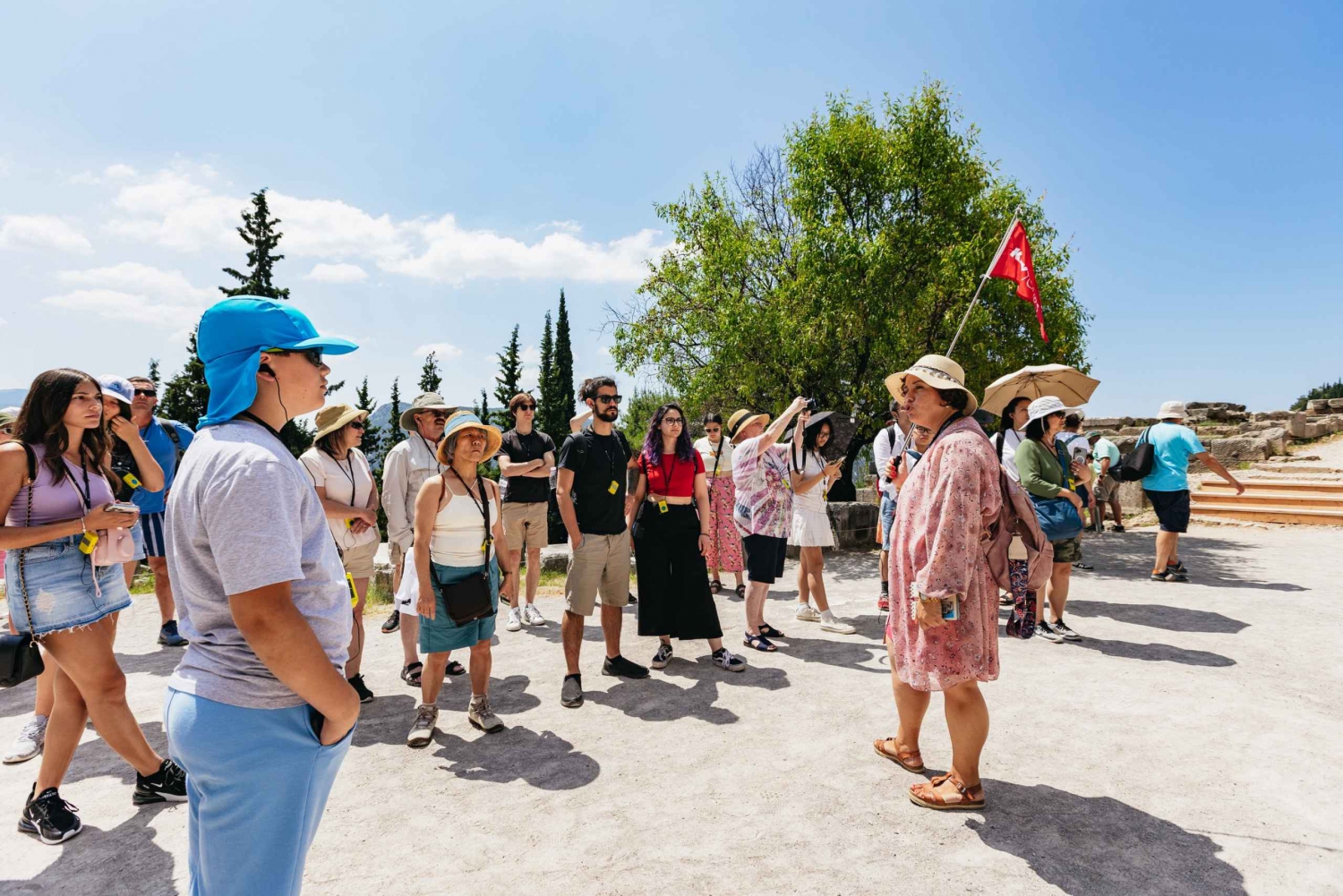 Beginne den Tag mit einer entspannten Fahrt durch die schöne griechische Landschaft, vorbei an den Städten Theben, Levadia und Arachova, bevor du gegen Mittag in Delphi ankommst.