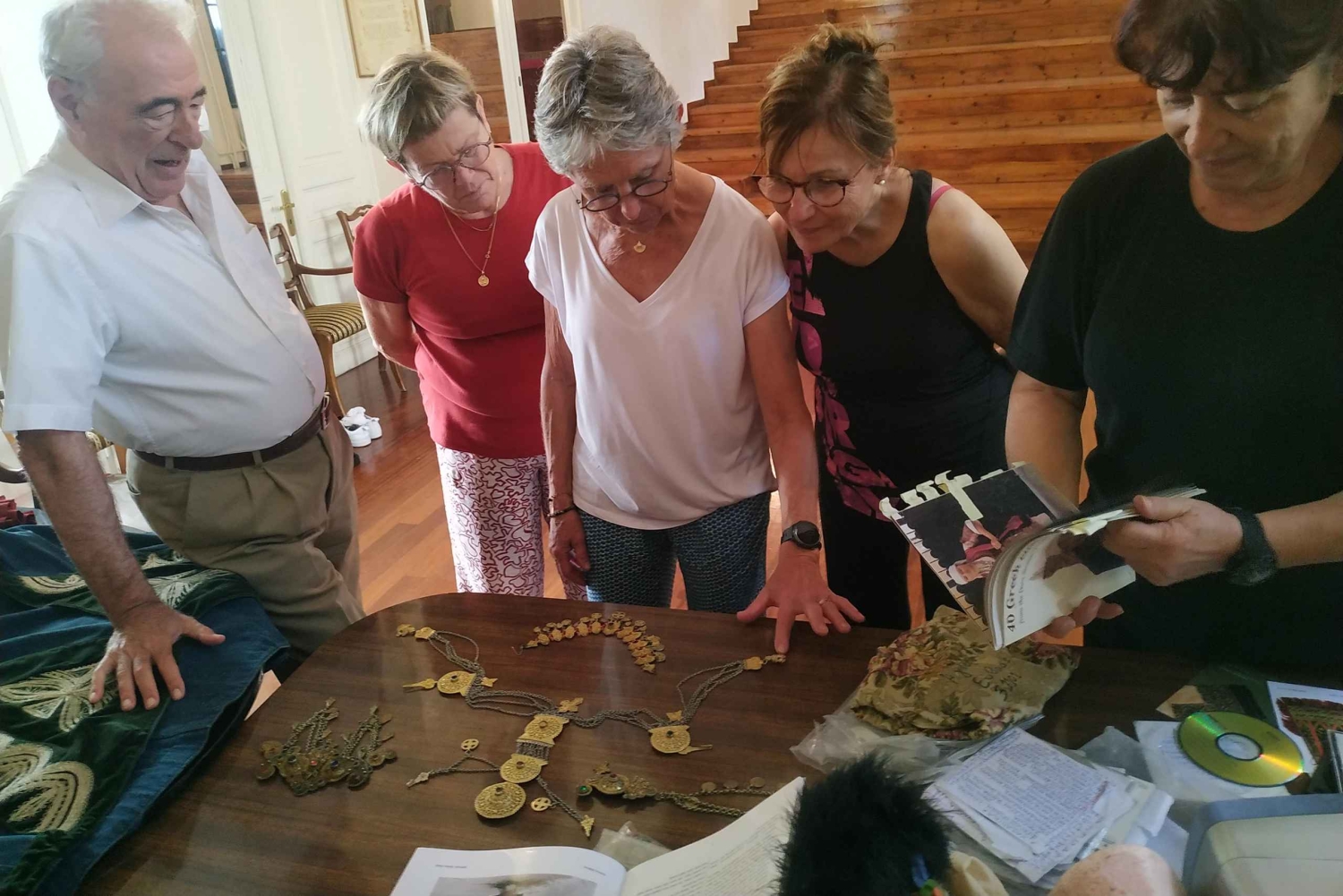 Aprende más sobre Grecia bailando danzas conocidas de las hermosas islas de los mares Egeo y Jónico y del continente. Los antiguos griegos creían que la danza había sido creada por los propios dioses, y por eso relacionaban las danzas con todos los cultos y actos religiosos. Para los griegos, las danzas griegas tienen un significado especial en sus vidas porque fueron creadas desde lo más profundo del alma de las personas. Bailan y cantan para expresar sus sentimientos, celebrar, dar la bienvenida a las distintas estaciones del año, etc. Resumen de la visita Nos reuniremos en nuestra oficina (muy cerca de la estación de METRO de la Acrópolis, a 3 min. a pie) y caminaremos por las hermosas y pintorescas callejuelas de Plaka (casco antiguo de Atenas) hasta llegar a la propiedad de George Finlay, historiador británico de la revolución griega, un edificio de cuatro plantas muy bien conservado con su patio florido donde tendrá lugar la clase de baile. Allí, un experimentado profesor de danza te introducirá en el mundo de las danzas populares y tradicionales griegas durante 1,5 horas. Conocerás la cultura de las distintas regiones griegas y, al mismo tiempo, te divertirás bailando mientras vives una experiencia inolvidable. Como parte de las clases, conocerás algunos de los numerosos trajes griegos y las joyas especiales que los adornan, y también obtendrás información general sobre la vestimenta griega.Includes