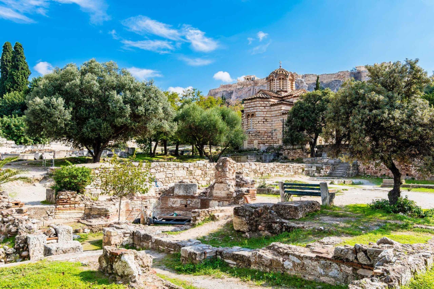 Embárcate en un inolvidable tour de día completo por Atenas, donde confluyen la historia antigua y la cultura vibrante. Comienza tu viaje en la emblemática Acrópolis, maravillándote con el Partenón y las amplias vistas de la ciudad. Explora el histórico barrio de Plaka, con sus encantadoras calles y tiendas locales, y visita el bullicioso mercado de Monastiraki. Disfruta de acceso exclusivo a lugares menos conocidos y recibe información personalizada de nuestros guías expertos. Saborea la auténtica cocina griega en una taberna local, haciendo de este recorrido una experiencia ateniense realmente envolvente.Includes
