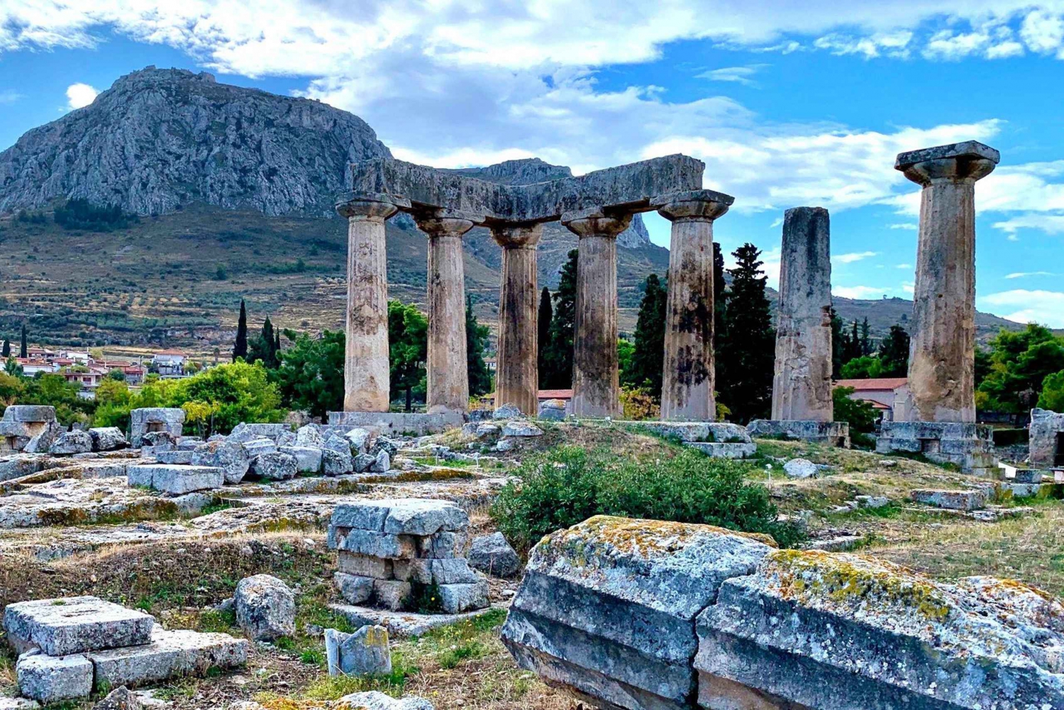 Descubre la antigua ciudad de Corinto y la fortaleza de Acrocorinto en un tour guiado desde Atenas. Visita el Canal de Corinto y la puesta de sol en el Templo de Poseidón.