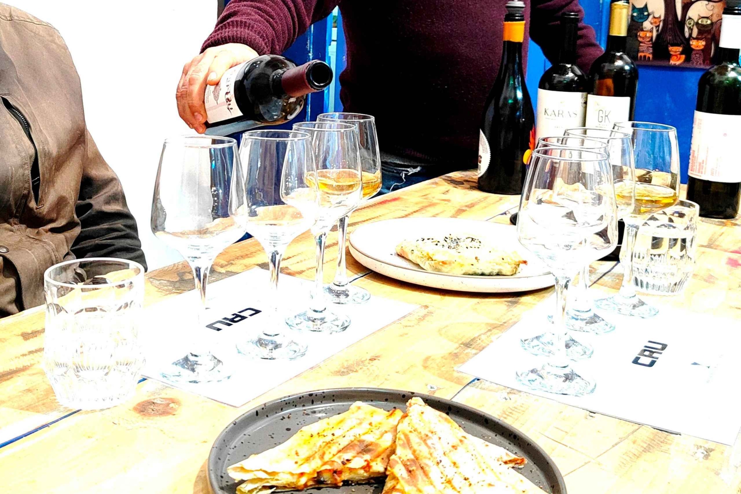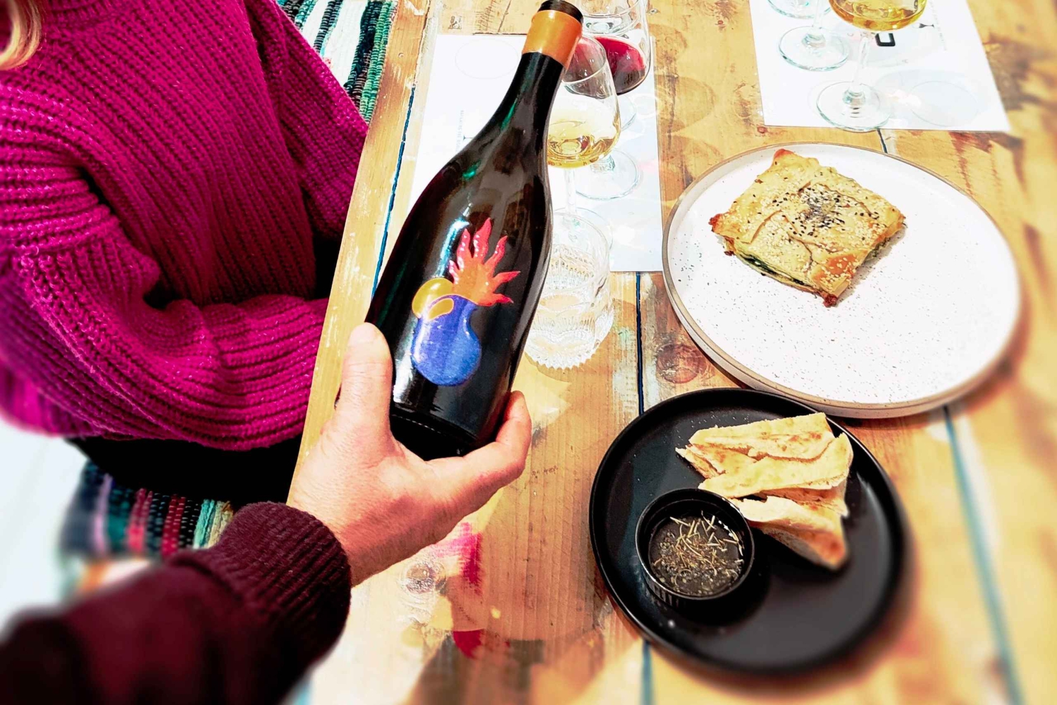You will try six absolutely delicious Organic, Biodynamic, Natural or Orange wines to try along with the right nibbles. The return of Real wine is now available worldwide and it is about to stay not only as a trend. These products are certainly Greece's great future in today's wine world as they distinguish themselves from any ordinary wines. The land easily can produce these kind of wines as they did thousands years ago due to many unique qualities that the country has. Reliable indigenous grape varieties, dry winds and hot days are key factors for producing these high standard wines. Then they are 340+ indigenous Ancient varieties with the science but also the knowledge of today made in amphorae (clay jars), stainless still or even plain cement with some having small influence of oak barrels and long ageing in a bottle. Small ancient nibbles along with extra virgin olive oil, concentrated grape must will complete this unique experience so you will be able to do similar thrills to the convenience of your home. Certain wines to try are limited bottling (as low as 200bottles) and hence they are available exclusively in out store to buy or ship.Includes