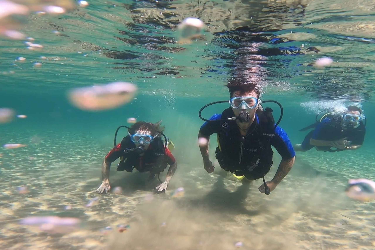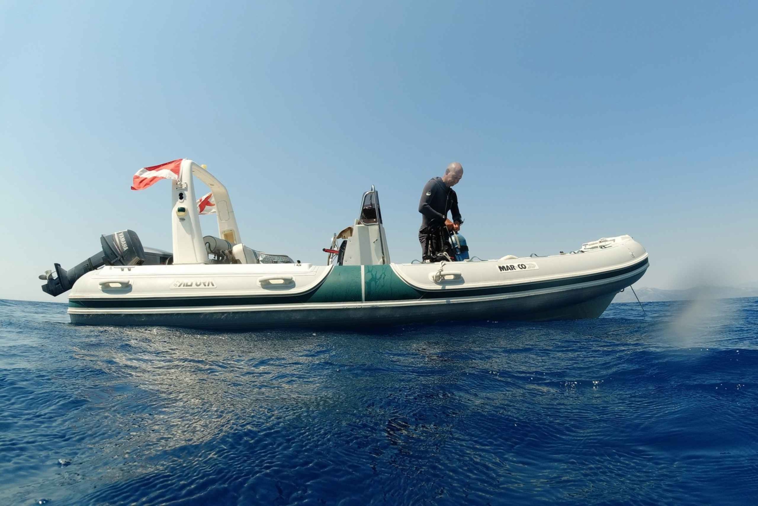 Vain 45 minuutin ajomatkan päässä Ateenan keskustasta eteläisellä Evoikosinlahdella on useita sukelluskohteita, joihin voit tutustua - rentouttavimmista haastavimpiin. Voit valita, sukellatko rannalta vai lähdetkö veneellä avovesille. Tapaamispaikka on sukelluskeskuksessa, ja varusteiden valmistelun jälkeen suuntaat Schiniasin lahdelle, jossa yksityinen puhallettava vene sijaitsee. Sieltä käsin ja 6 mailin (25 minuutin) etäisyydellä voit tutustua joihinkin Välimeren mielenkiintoisimmista sukelluskohteista: Platourada-saari, Dipsa-saari ja Marathon-kap. Kokenut sukelluskouluttaja auttaa sinua kaikissa tarvittavissa valmisteluissa ja opastaa sinua sukelluksen aikana, joten sinun tarvitsee vain rentoutua ja nauttia sukelluksesta. Sukellusten välissä on puolitoista tuntia pinnan yläpuolella, jossa on tarjolla virvokkeita ja välipaloja. Kaikki sukellusvarusteet, vesi, välipalat ja virvokkeet sisältyvät hintaan.Includes
