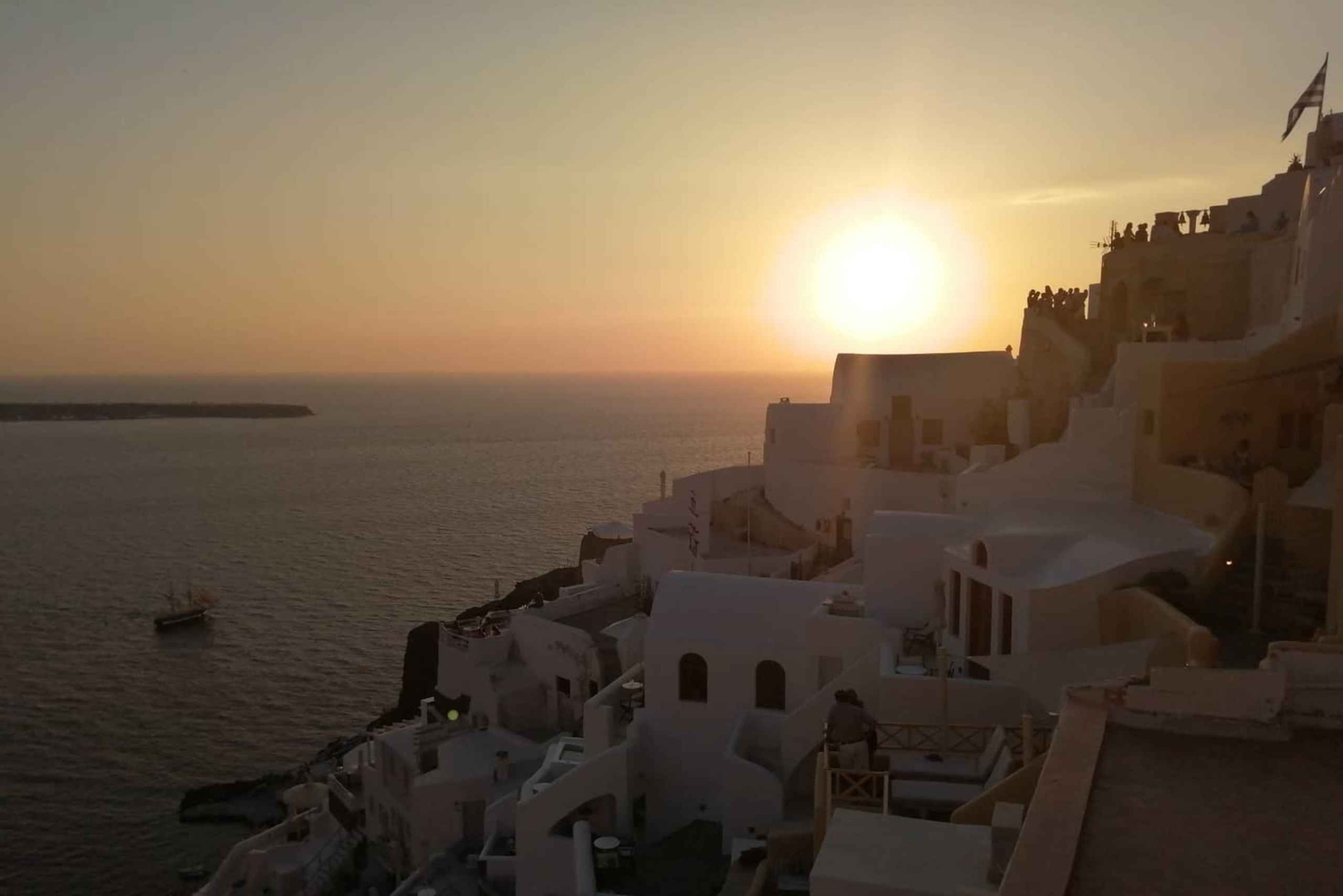 Lähtö Pireuksen satamasta klo 7:25. Saapuminen Santorinille noin klo 15.30. Saapuessasi Santorinin satamaan kuljettaja pitää kylttiä, jossa on nimesi. Hän kuljettaa teidät hotellillenne. Sen jälkeen sinulla on vapaata aikaa tutustua saareen. Suosittelemme, että käytte viehättävässä Oian kylässä, jossa voitte kävellä mukulakivipolkua pitkin, joka johtaa Oian linnalle, jossa teillä on ainutlaatuinen mahdollisuus nauttia maailman kuuluisimmasta auringonlaskusta. Käytä aikaa katsellaksesi, kuinka aurinko sukeltaa Egeanmereen maalatessaan taivaan violeteilla, vaaleanpunaisilla ja oransseilla väreillä! Näkymää ja tunteita ei voi kuvailla sanoin! Kokemus, johon sopii täydellisesti lasillinen Vinsanto-viiniä, paikallista likööriä, jota valmistetaan vain Santorinilla kuivatuista rypäleistä! Seuraavana päivänä kuljettajamme noutaa sinut hotelliltasi ja kuljettaa sinut Santorinin satamaan, josta nouset lauttaan, joka lähtee takaisin Pireukseen. Lautta lähtee Santorinilta klo 15:10 ja saapuu Pireukseen noin klo 23:20. Piraeuksen satamasta toinen kuljettaja kuljettaa sinut Ateenassa sijaitsevaan hotelliisi.Includes