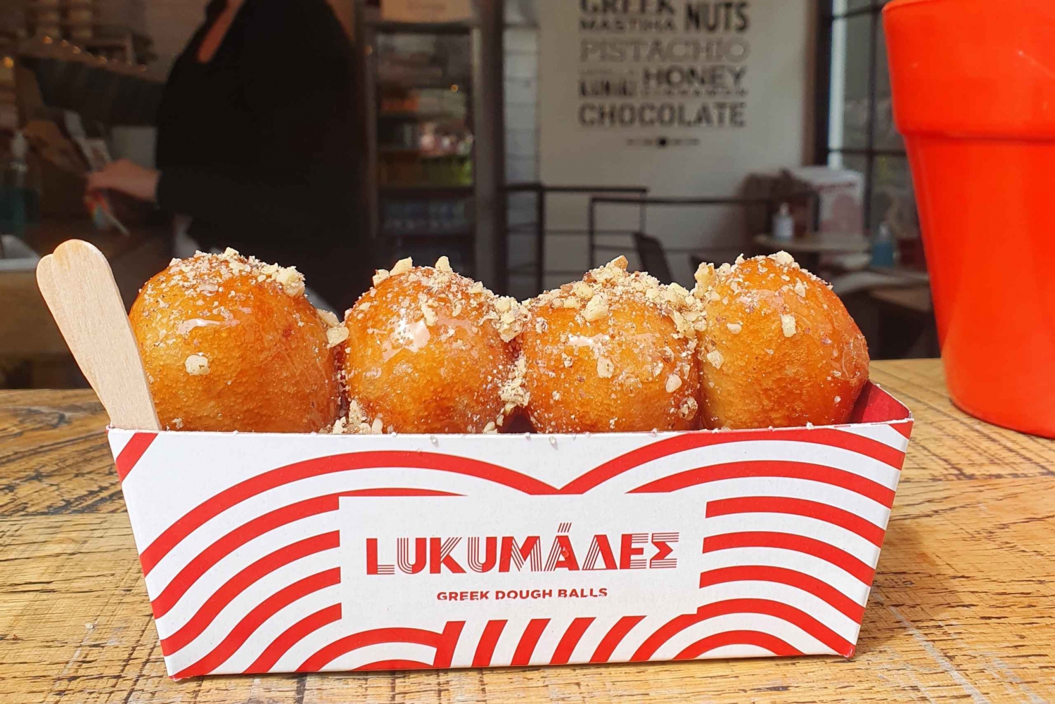 Découvrez Athènes comme un habitant : visite culinaire de la street food Commencez votre aventure gastronomique dans une pâtisserie très appréciée, où vous vous régalerez d'une tarte au fromage fraîchement préparée ou d'une spanakopita (tarte aux épinards et au fromage) feuilletée, dorée et pleine de saveur. Ensuite, savourez la street food grecque par excellence : le souvlaki ! Que vous soyez amateur de viande ou végétarien, savourez des brochettes appétissantes enveloppées dans du pain pita chaud, accompagnées de tomates juteuses et de tzatziki crémeux. Accompagnez le tout d'une bière ou d'un vin local rafraîchissant. Promenez-vous dans le quartier commerçant animé d'Athènes et découvrez un restaurant de pizza grecque en forme de bateau. Oui, c'est aussi unique et délicieux que cela en a l'air ! Ensuite, offrez-vous des loukoumades, des beignets grecs trempés dans du miel et de la cannelle, dans une pâtisserie légendaire. En vous promenant dans les rues artistiques de Psyrri, imprégnez-vous de l'énergie vibrante du quartier, du street art, des boutiques vintage et des cafés charmants. Ressentez le pouls créatif d'Athènes en explorant ses trésors locaux. Enfin, terminez votre visite sur une note sucrée avec des desserts grecs exclusifs et une spécialité locale unique que l'on ne trouve qu'en Grèce, une saveur inoubliable à emporter chez vous dans votre cœur (et vos papilles !). Si vous ne trouvez pas de place disponible, veuillez nous contacter. Souhaitez-vous personnaliser l'expérience pour qu'elle corresponde parfaitement aux préférences de votre groupe ? Besoin de plus de flexibilité ? Nous sommes là pour vous ! Des visites privatives sont disponibles sur demande, moyennant un supplément. Veuillez nous contacter et nous nous chargerons de tout.