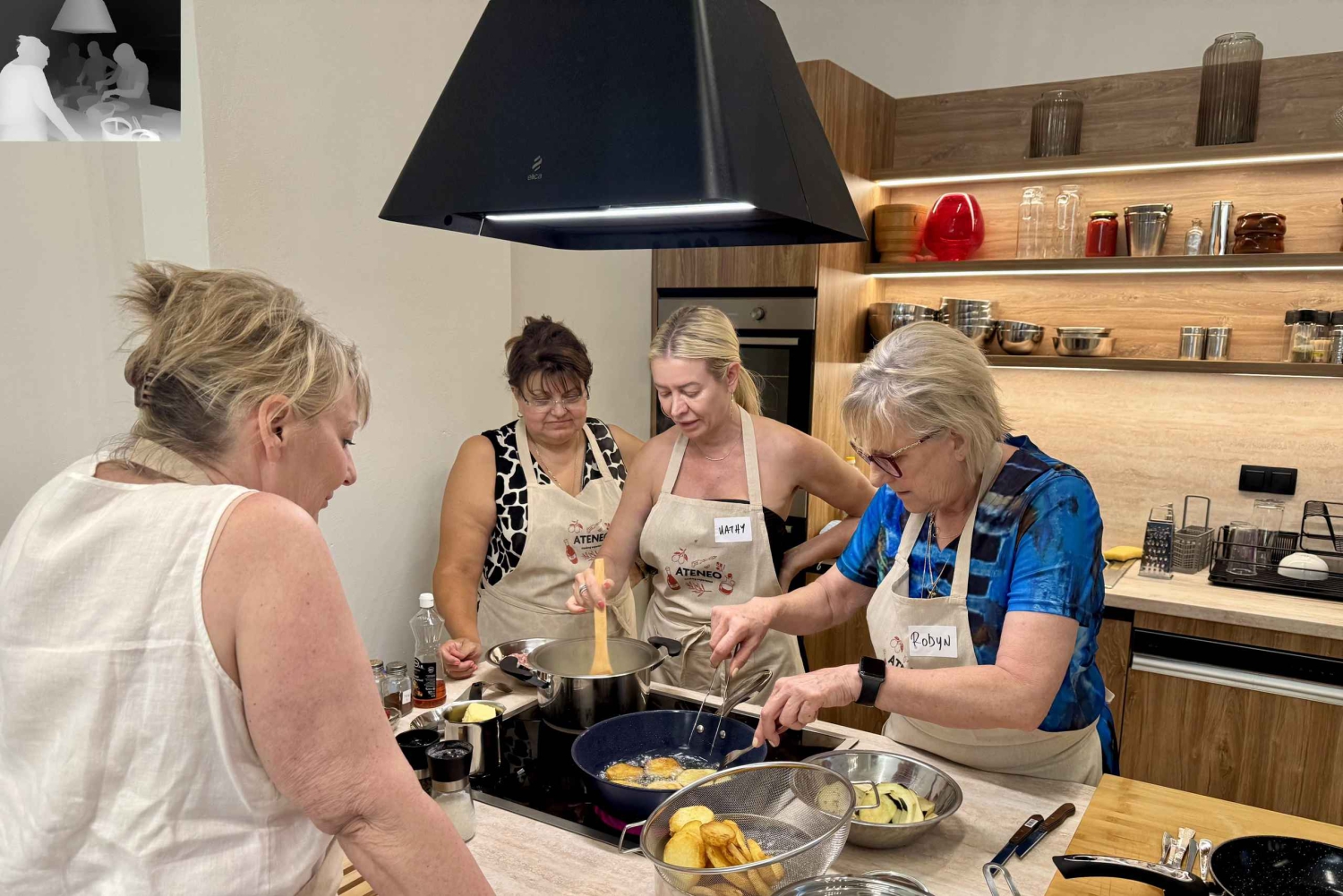 Introduction à la cuisine grecque Cours de cuisine dirigé par un chef professionnel Tous les ingrédients nécessaires pour la préparation des plats Repas partagé de plats préparés Menu de 5 plats, disponible pour le déjeuner ou le dîner Vin, eau, boissons non alcoolisées et bièresImportant Information