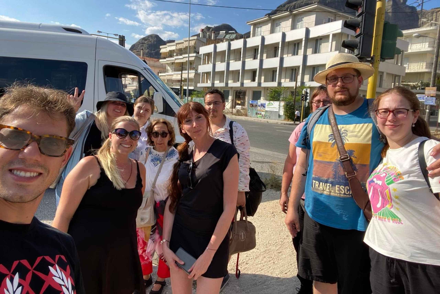 Rencontrez notre guide local dans la ville principale de Kalabaka. Montez à bord de notre minibus moderne et climatisé et commencez votre fascinante visite de Météora ! Rejoignez les rochers de Météora, où une expérience inoubliable vous attend. Composées de grès et de conglomérats, les grottes de Météora auraient été habitées il y a déjà 50 000 ans. Écoutez notre guide local vous raconter l'histoire et l'importance de la région, puis entrez dans deux monastères encore en activité pour avoir un aperçu de la vie des moines (entrée non comprise, 5 euros). Au IXe siècle, les moines ont recommencé à les habiter et au XIVe siècle, les premiers monastères ont été construits. Aujourd'hui, Meteora abrite l'un des plus importants complexes de monastères orthodoxes orientaux. Découvrez les six monastères construits sur de grands piliers naturels tout en explorant les lieux et en prenant des photos inoubliables.Includes