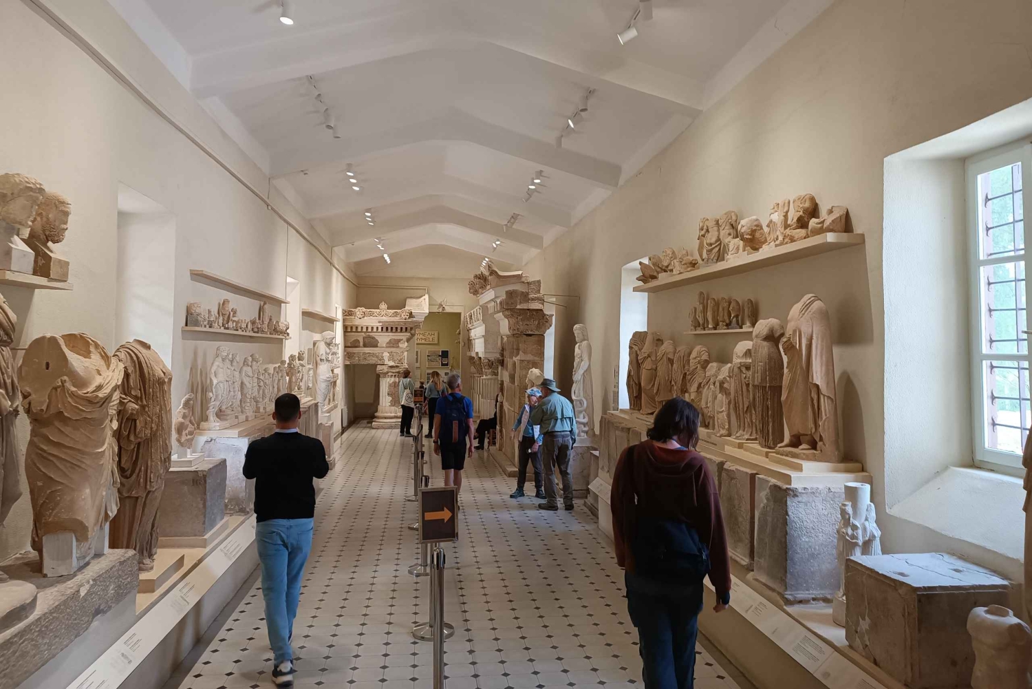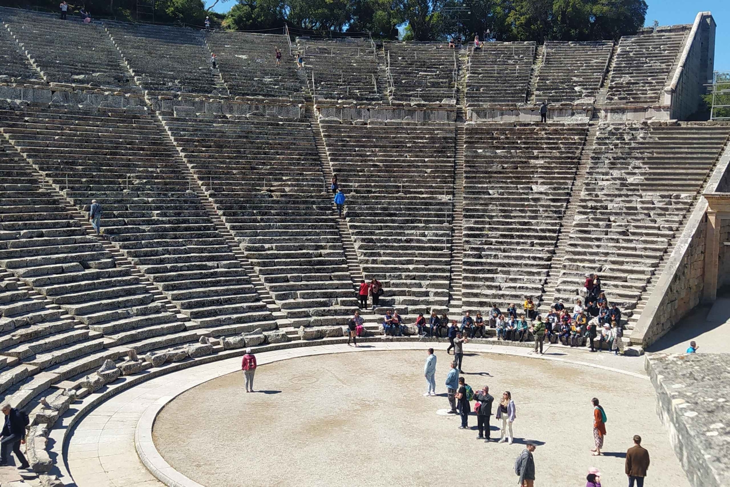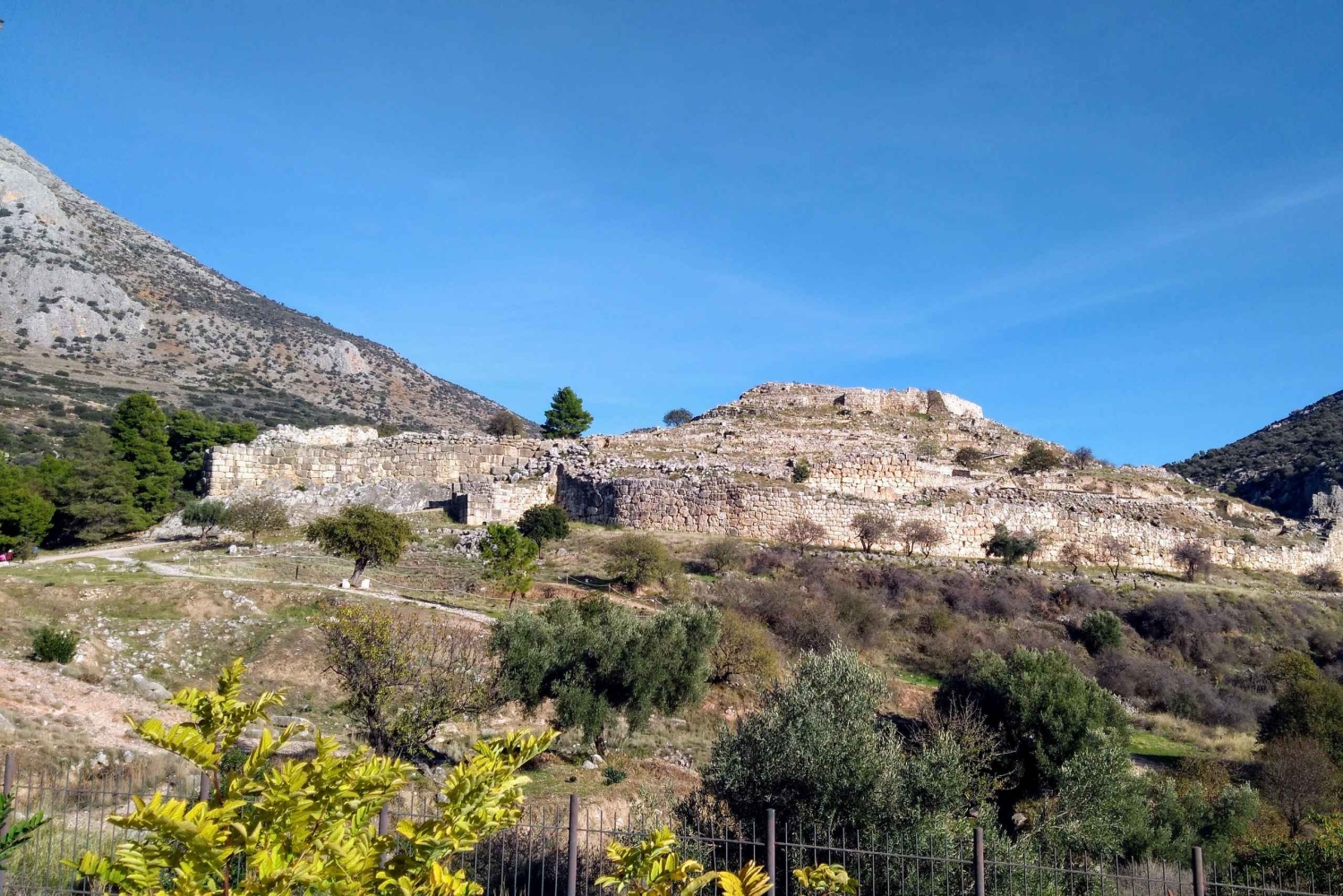 Pourquoi cette excursion ? Il s'agit d'un moyen formidable et facile de profiter d'une visite privée de la belle île d'Hydra. Rendez-vous au village d'Ermioni, à 30 minutes de bateau du port d'Hydra. Cette visite passe par de nombreux sites clés de l'UNESCO, du célèbre théâtre acoustique d'Epidaure au site de Mycènes du roi Agamemnon, en passant par la 'vieille ville' vénitienne de Nauplie et la forteresse de Palamadi, où vous descendrez les 999 marches avant d'avoir une vue à couper le souffle sur la péninsule. Là, vous dégusterez un authentique déjeuner grec, des boissons et des desserts (tout compris) avec l'aide de votre personnel accompagnant. Option 1 : Ce circuit peut également fonctionner dans le sens inverse, en partant d'Athènes, en explorant les sites mentionnés et en vous déposant au port d'Ermioni ou de Metochi, où vous pourrez prendre le ferry de 30 minutes pour l'île d'Hydra ! Veuillez vous renseigner au préalable si vous souhaitez réserver ! Option 2 : Après l'excursion, vous pouvez vous rendre à Athènes en payant seulement un supplément pour vos bagages. Renseignez-vous ! Hydra est la maison et l'une des bases d'Eudaimonia Private Tours. Notre relation avec la région améliorera votre visite et vous donnera l'impression d'être un habitant local. Outre l'exploration des sites célèbres, nous pourrons déguster ensemble un Ouzo ou un café grec, à l'endroit et au moment où les Grecs le font. Des moments privilégiés qui rendront votre visite inoubliable. Si vous êtes basé sur l'île d'Hydra et que vous souhaitez profiter d'une visite d'une jounée des sites les plus populaires de Grèce : Epidaure, Nauplie et Mycènes, ce circuit est fait pour vous ! Vous devez prendre un court tour en bateau du port d'Hydra jusqu'à la belle ville péninsulaire d'Ermioni ou le petit port de Metohi, tous deux en face d'Hydra, où vous rencontrerez votre chauffeur / personnel accompagnant. Vous profiterez d'une expérience personnelle et flexible de certains des sites les plus étonnants de Grèce lors de cette visite d'une jounée au départ de l'île d'Hydra. Retrouvez votre chauffeur/accompagnateur vers 9 heures au port d'Ermioni ou de Metohi et embarquez dans un véhicule privé confortable. Le premier arrêt est le théâtre antique d'Epidaure. Epidaure est un site inscrit au patrimoine mondial UNESCO qui abrite un théâtre antique magnifiquement préservé. Explorez le site à votre guise. Une fois vos explorations terminées, retournez à votre véhicule privé et dirigez-vous vers la belle ville de Nauplie. Nauplie, la première capitale de la Grèce, est célèbre pour son architecture historique. Visitez la célèbre forteresse vénitienne de Palamidi à Nauplie et, si vous le souhaitez, descendez les 999 marches pour profiter d'une vue imprenable. Ensuite, promenez-vous dans les belles rues étroites de la vieille ville. Enfin, vous dégusterez un déjeuner grec traditionnel assis, accompagné de boissons et d'un dessert, avant de regagner votre véhicule et de vous rendre à Mycènes. Ce site inscrit au patrimoine mondial de l'UNESCO abrite certaines des ruines antiques les plus célèbres de Grèce. Promenez-vous dans le site archéologique et le musée qui l'accompagne avant de remonter dans le véhicule pour retourner au port d'Ermioni et à l'île d'Hydra. Si vous aimez cette visite, consultez toutes nos visites privées GetYourGuide : https://shorturl.at/cS60rIncludes