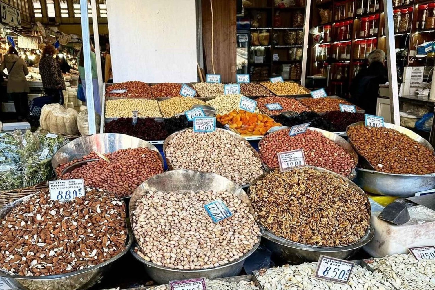 Tour guidato a piedi dei mercati di Atene Degustazione di cibi tradizionali greci, tra cui il Koulouri e le torte greche Assaggio di dolci greciEasy cancellation