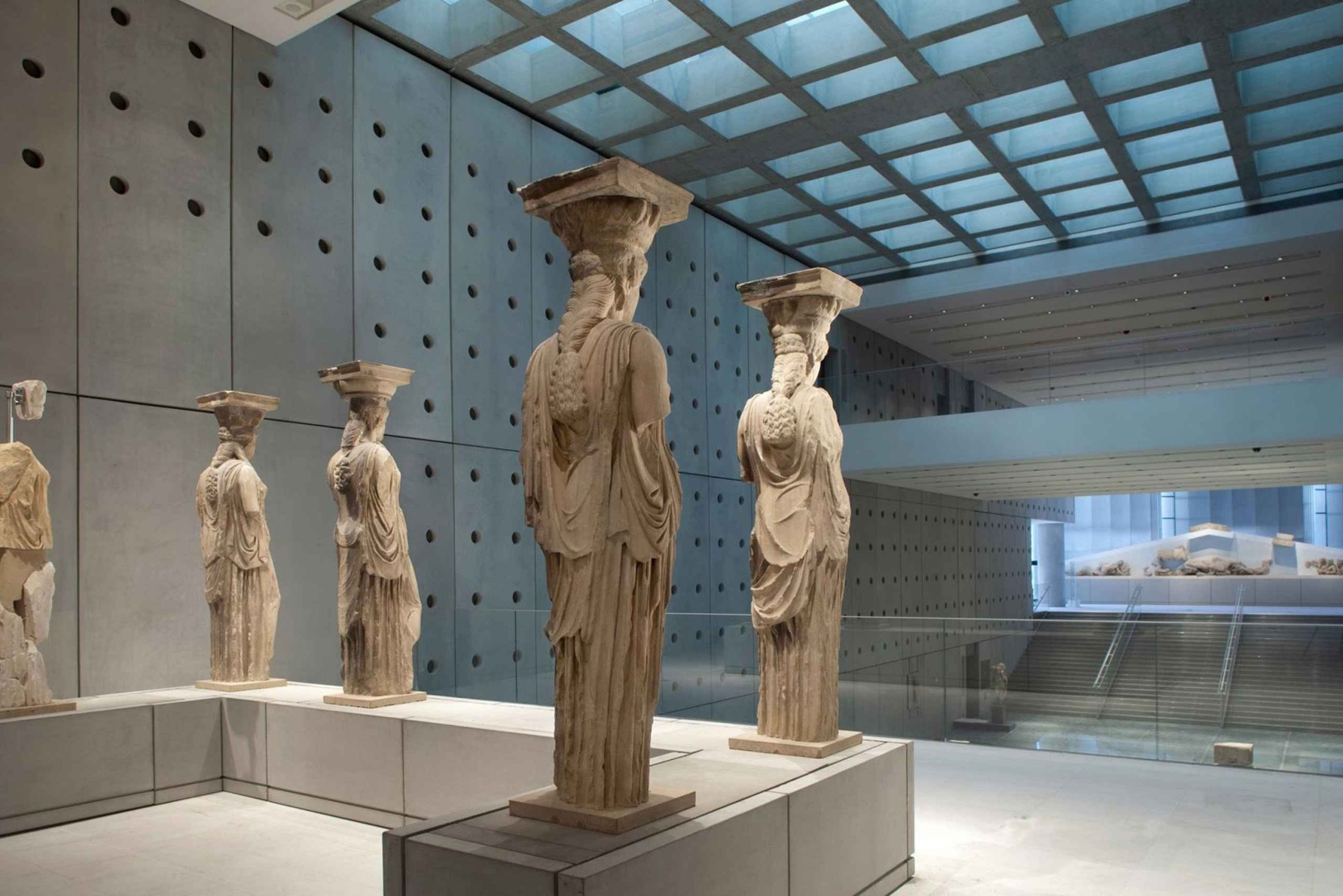 Ammira i monumenti dell'Acropoli, il Partenone e il Museo dell'Acropoli, famosi in tutto il mondo, nel tardo pomeriggio con una guida autorizzata. Le statue illuminate e le antichità classiche dell'Acropoli sono un'esperienza unica nella vita. Potrai ammirare l'Acropoli illuminata dal balcone del museo e gli scavi completamente illuminati sotto i pavimenti in vetro del museo. L'opportunità di ammirare le collezioni di fama mondiale dei monumenti dell'Acropoli e la sala di vetro del Partenone di notte è un'esperienza che pochi possono dire di aver vissuto. Puoi osservare i modelli in scala disseminati in tutto il museo (tra cui uno realizzato interamente in Lego). Questi modelli ti aiuteranno a visualizzare l'antica grandezza del sito del museo. Solo ogni venerdì il museo apre fino a tarda notte: la possibilità di vedere le gallerie senza la folla delle prime ore è un'esperienza unica.Includes