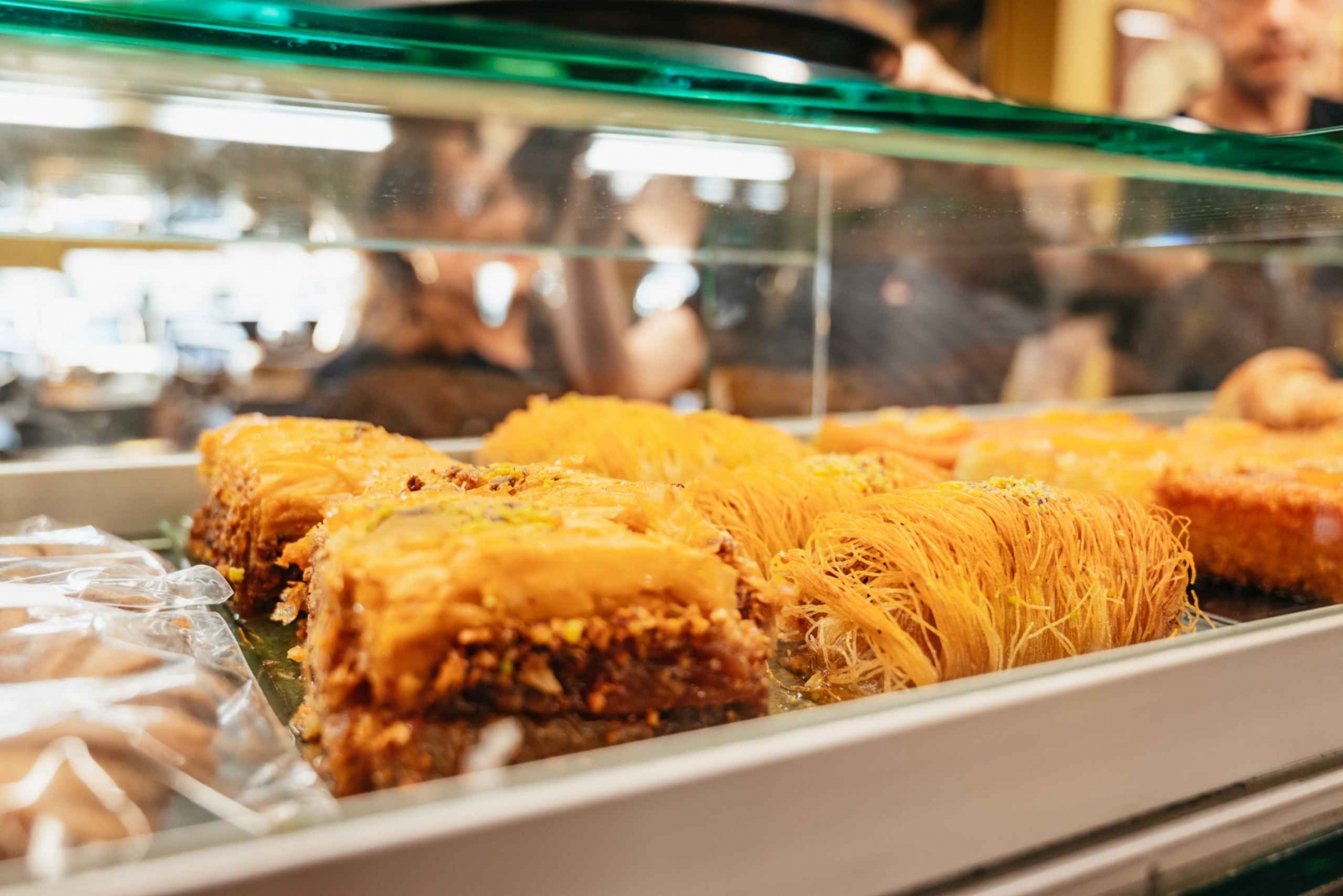 Esplora i mercati gastronomici di Atene con un tour guidato a piedi del mercato di Varvakios Agora e delle taverne locali. Assaggia delizie e visita i negozi locali che vendono prodotti tipici greci di qualità come olio d'oliva, vini, funghi, erbe e salumi tradizionali. Inizia con un assaggio della tradizione greca con la koulóuria (anelli di pane al sesamo). Assaggia i famosi loukoumades (ciambelle greche) e i quadrati di pasta fillo ripieni di crema pasticcera e visita una pasticceria locale. Assaggia le torte e i formaggi locali in un'autentica panetteria greca. Passeggia poi nei famosi mercati della carne e del pesce. Prova il caffè tostato e visita i negozi specializzati in frutta fresca, olive, formaggio, prosciutto e altri prodotti di gastronomia. Assaggia il vino locale, l'olio d'oliva e il miele di produzione biologica, l'aceto aromatizzato invecchiato e il famosissimo yogurt greco con guarnizione al miele di timo. Passeggia per la via Evripidou e annusa le inebrianti erbe aromatiche. Continua la tua esplorazione culinaria nel centro storico della città e visita alcune autentiche taverne del centro, che servono la versione greca delle tapas. Termina il tuo tour con un tipico souvlaki greco di pane pita con un delizioso gyros di maiale o di pollo.