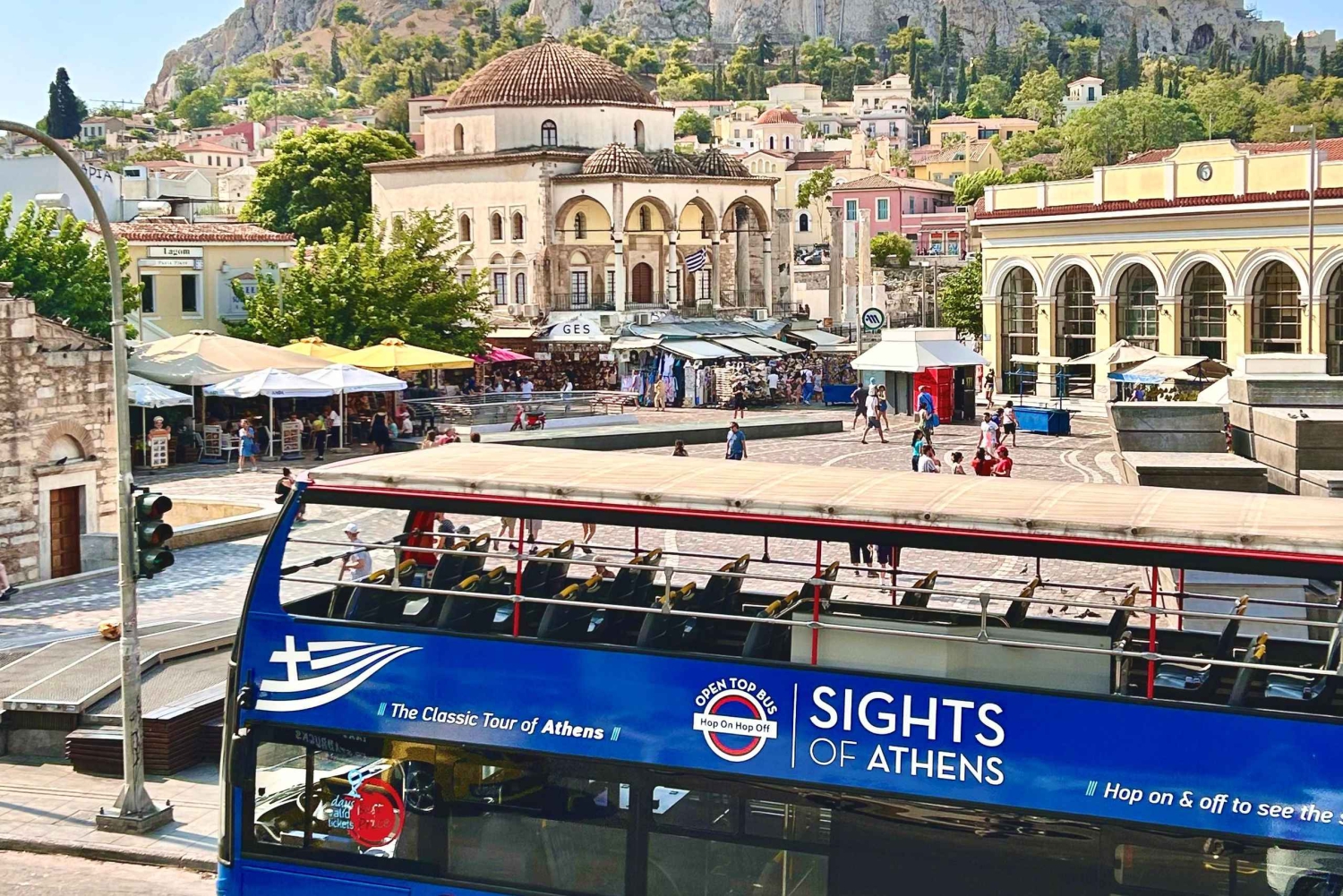 乗り降り自由のバスチケットで、アテネ、ピレウス港、ビーチを自分のペースで探索しましょう。ピレウス線では、パサリマニのヨットマリーナやミクロリマノの古代港を訪れることができます。アテネ線では、歴史あるプラカ地区に行き、アテネで最も伝統的なエリアを探索できます。ローマ皇帝ハドリアヌスの門、オリンピアゼウス神殿、シンタグマ広場のギリシャ議会を訪れましょう。 グリファダ線でアテネのリビエラを巡り、1900 年代の混乱した砂漠がギリシャで最も国際的なエリアの 1 つに進化した様子をご覧ください。マリーナ フリスヴーから夕日を眺めたり、アギオス コスマスで泳いだり日光浴をしたりしましょう。グリファダ ターミナルからは、首都で最も国際的な郊外を散策したり、高級デパートでショッピングしたりできます。美しいカフェでくつろいだ後は、海辺でカクテルを楽しめるビーチバーもお見逃しなく。 連合軍墓地からビザンチン博物館まで、ブリアグメニ線はアテネで最も人気のビーチの 1 つに停車します。ブリアグメニ湖に行って、市内で最も人気のスポットの 1 つを探索してください。温泉もお見逃しなく、息を呑むほど美しい周囲の景色を堪能してください。ピレウスのハッピー トレインでは、首都で最も絵のように美しい郊外の 1 つを往復できます。クルーズ ターミナルから出発し、市立劇場、海洋博物館、パサリマニを通り過ぎる 30 分の旅です。コライ広場を散策し、プライベート ヨット マリーナからすぐのピレウスの商業中心地を探索してください。Includes