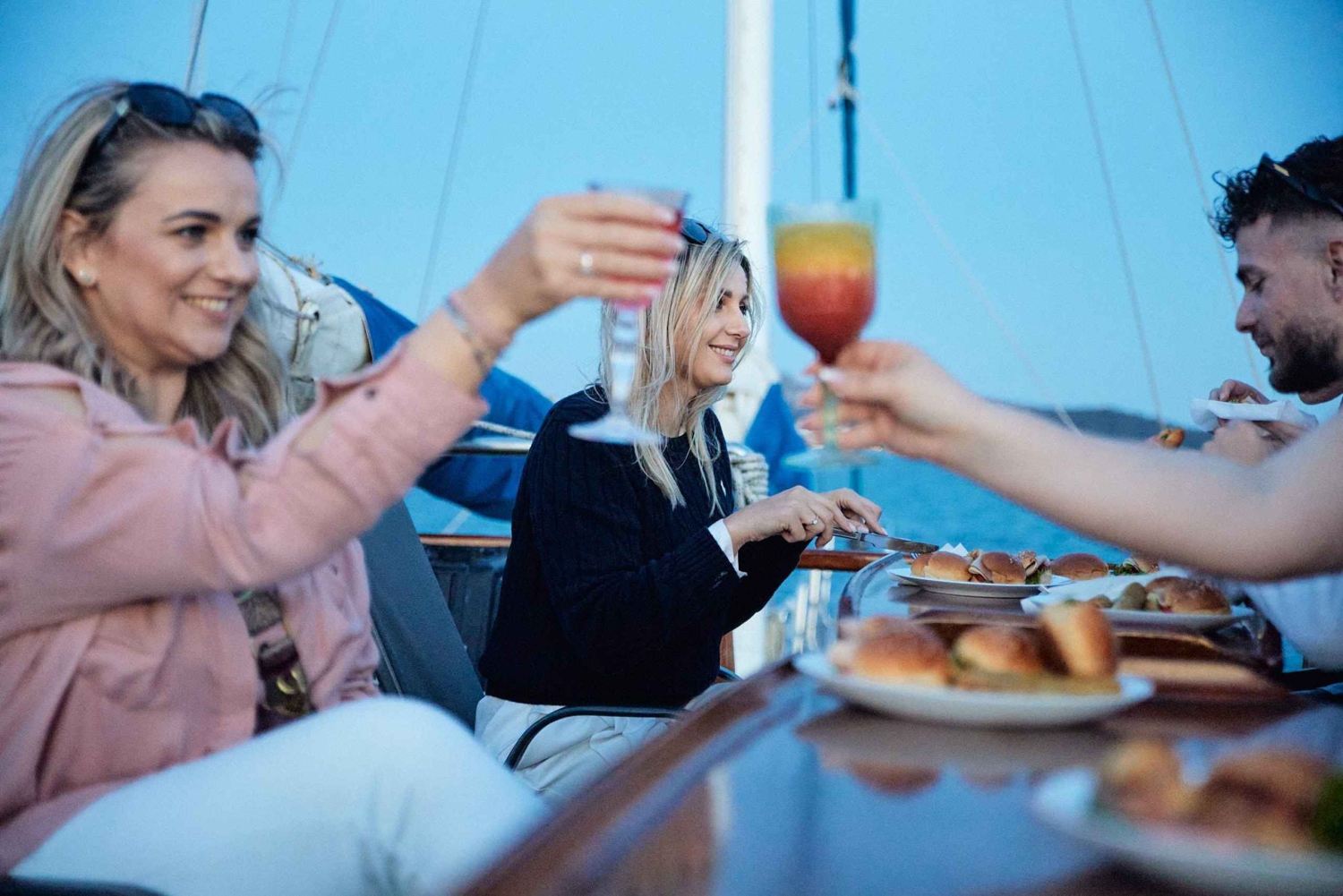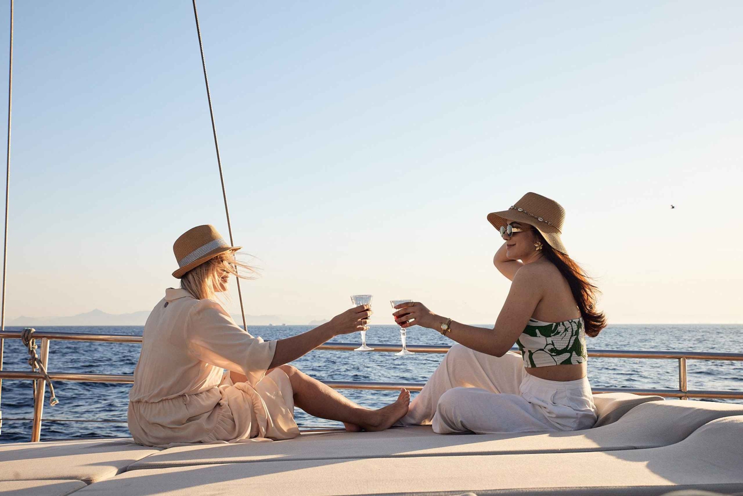 マリーナ ゼアから午後 9 時 30 分に出発する、忘れられないアテネ リビエラ サンセット クルーズにご参加ください。スムーズな出発とスムーズな体験を確実にするために、乗船時間の 20 分前に到着してください。 ウェルカム ドリンクを飲み、おいしいフィンガー フードを楽しみ、波のリズムに身を任せながら、夕日が色とりどりの壮大な景色を描きます。泳ぎながら澄み切った海に飛び込み、ボートから飛び降りて爽快な体験を。これは単なるクルーズではありません。リフレッシュして元気を取り戻し、もっと乗りたくなるような忘れられない旅です。Includes