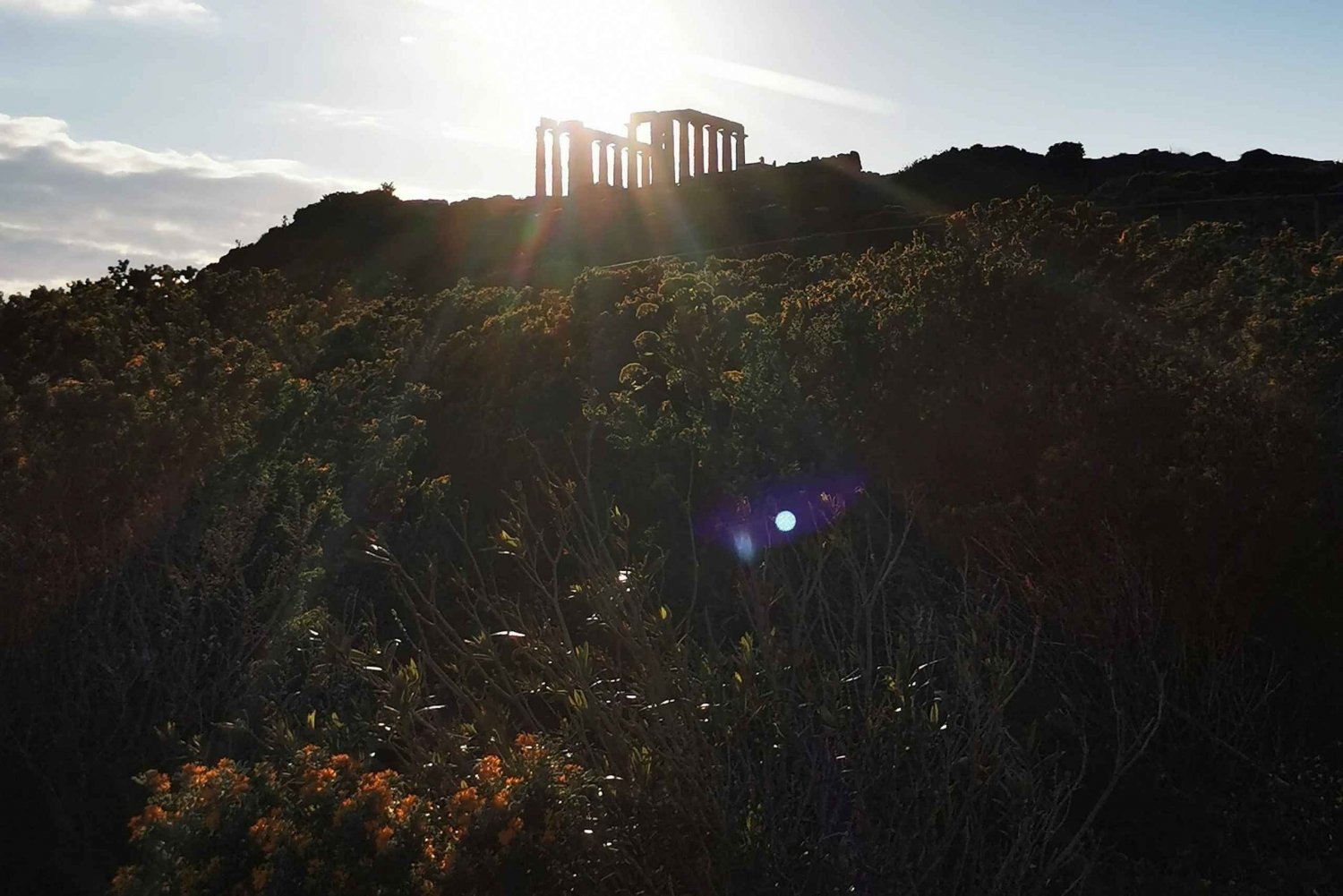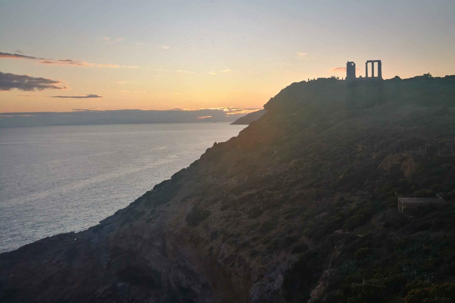 Athene: Sounio Tempel van Poseidon Zonsondergang Door Atheense Rivièra