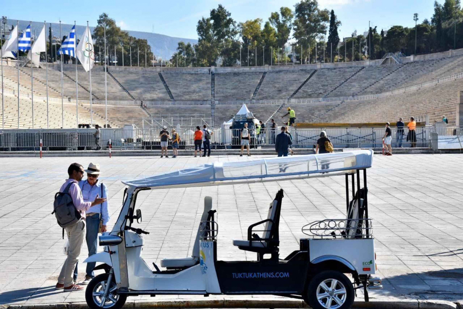 Verken Athene in een milieuvriendelijke, 100% elektrische Tuk Tuk die perfect is om je te verplaatsen over de smalle wegen van de stad. Laat je privéchauffeur je meenemen naar de must-see locaties van de stad tijdens deze 4 uur durende tour. Begin met een bezoek aan de meest emblematische monumenten in het centrum van de stad: bekijk het Griekse Parlement, het Graf van de Onbekende Soldaat, de Academie van Athene en de Agios Dionysios Areopagitis Kerk. Je kunt ook 45 minuten stoppen bij de berg Lycabettus. Lykabettos of Lykavittos is een kalkstenen heuvel uit het Krijt in Athene, 300 meter boven zeeniveau. Het uitzicht vanaf Lycabettus is een must, want alleen hier is het mogelijk om de enorme uitbreiding van de stad Athene te zien. Bezoek de wijk Kollonaki, een centrum voor luxe winkelen waar internationale merken en Griekse designerboetieks ruimte delen met strakke conceptwinkels en galerieën. Geniet van een korte stop bij het Panatheense Stadion of Kallimarmaro, het oude Olympische Stadion, een van de belangrijkste historische bezienswaardigheden van Athene en het enige stadion ter wereld dat volledig uit marmer is opgetrokken. Je ziet ook de Tempel van Olympus Zeus en de Hadrianusboog. Rijd door Plaka, de oude historische wijk van Athene, gegroepeerd rond de noordelijke en oostelijke hellingen van de Akropolis, met labyrintische straatjes en neoklassieke architectuur. Hier zie je de Toren der Winden, de bibliotheek van Hadrianus en de Romeinse Agora. Tijdens de rest van je rondleiding zie je bezienswaardigheden zoals de Oude Agora, de Akropolis, de Areopago-heuvel, de wijk Thisseio, Monastiraki, de vlooienmarkt en Psiri, de nieuwe centrumwijk van de stad waar de plaatselijke bevolking graag hun avond en vrije tijd doorbrengt. Deze dag zit boordevol met de meest indrukwekkende en historische bezienswaardigheden van Athene.Includes