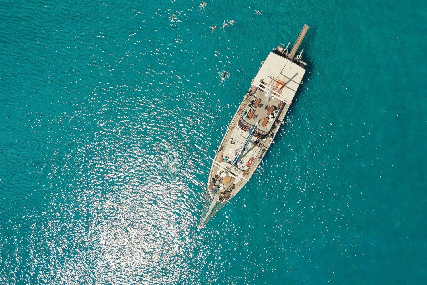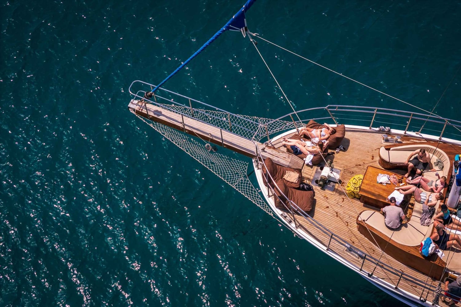 5 uur durende cruise op een traditionele houten zeilboot Twee zwemstops Vers bereide lunch aan boord Welkomstkoffie, sap en gebak Onbeperkt frisdrank, wijn en bier Chille muziekambianceEasy cancellation
