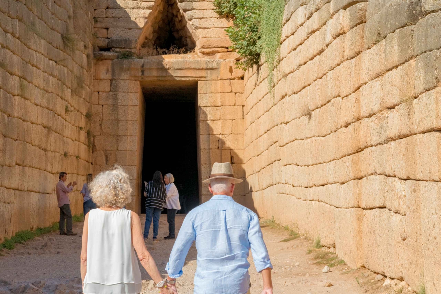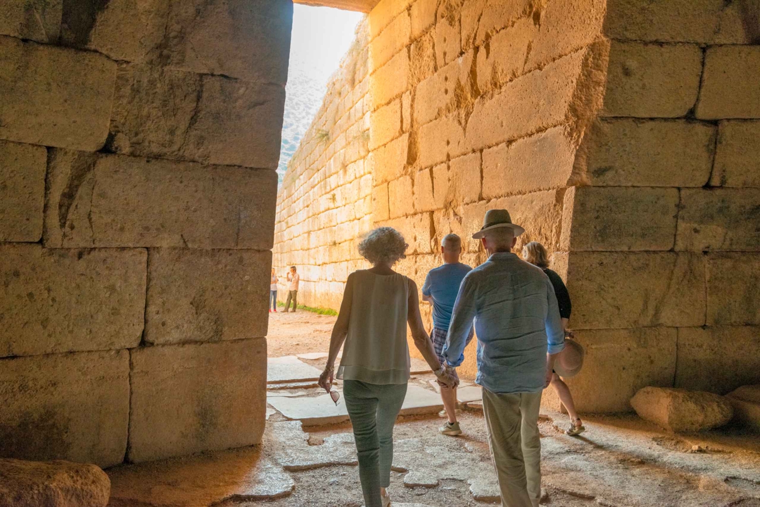 Geniet van een gemakkelijke transfer van en naar je accommodatie met je professionele gids. Tijdens deze tour ontdek je van alles, van het wonderbaarlijke bouwwerk van het Kanaal van Korinthe tot de ruïnes van het oude Korinthe en het Theater van Epidaurus met zijn verbazingwekkende akoestiek en de UNESCO site van het oude Mycene met het paleis van Agamemnon. Geniet van de lunch in de prachtige middeleeuwse havenstad Nafplio met uitzicht op het Venetiaanse kasteel van Bourtzi. Neem de tijd om de vele ambachtelijke winkeltjes en boetiekjes te verkennen. Leun achterover in volledig lederen comfort in een nieuwe zwarte Mercedes E-klasse of AudiA6 met WiFi terwijl je langs de olijfvelden, boomgaarden & Egeïsche uitzichten van het beroemde Peloponnesos platteland rijdt. Een geweldige optie voor gezinnen, kleine groepen en ervaren reizigers met flexibiliteit om in je eigen tempo te reizen.Includes