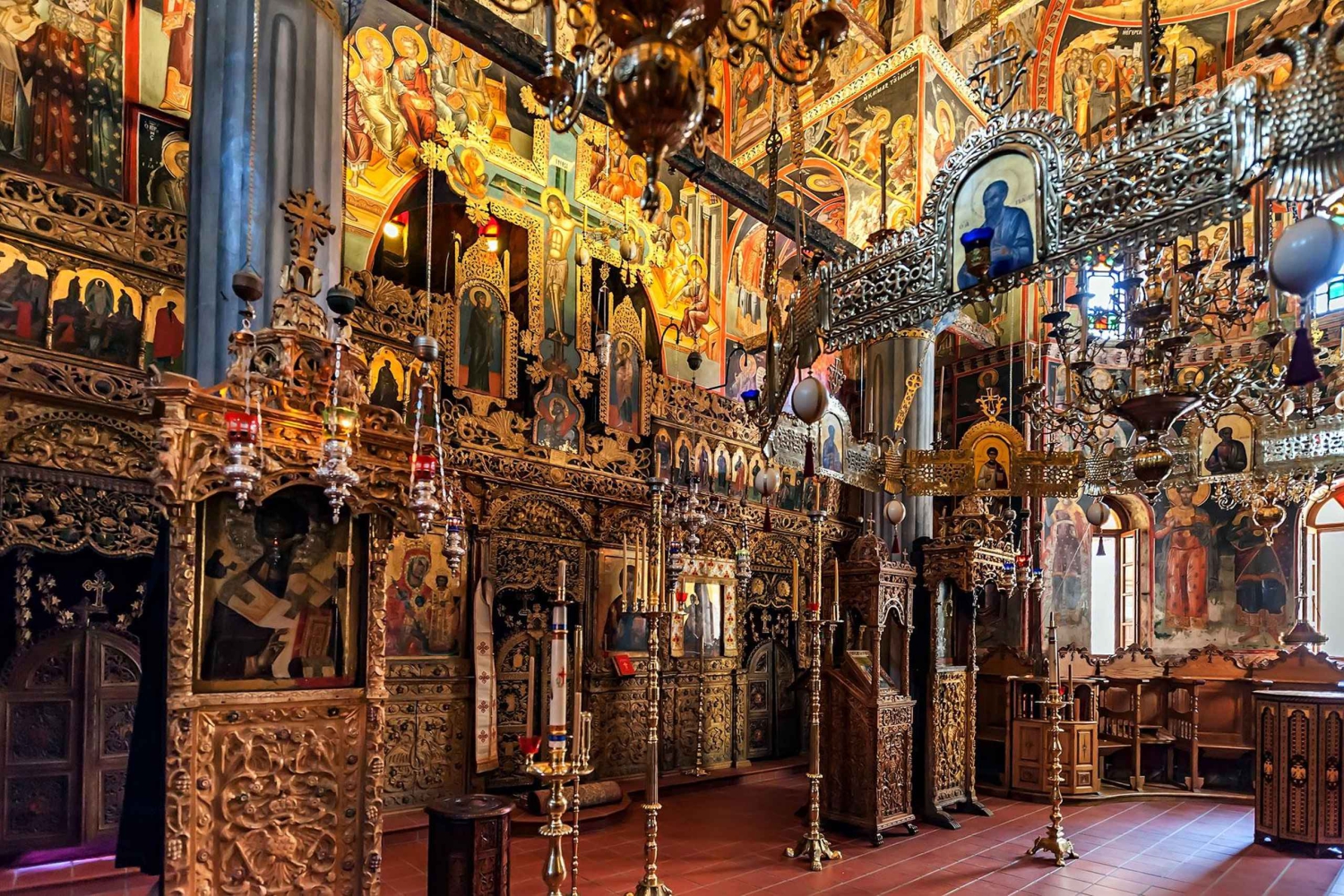 Begynn en heldagstur fra Athen til den fantastiske Meteora, et UNESCO-verdensarvssted kjent for sine skyhøye klostre og åndelige ro. Denne turen kombinerer hellig historie, dramatiske landskap og kystens sjarm, alt på en uforglemmelig dag. Avreise fra Athen Begynn eventyret med en komfortabel avreise fra Athen kl. 08.00, rett overfor sentralstasjonen. Reis i en førsteklasses, klimatisert buss med en profesjonell engelsktalende sjåfør og nyt den naturskjønne utsikten over landskapet mens du reiser mot Kalabaka. Brunsj ved sjøen Unngå de travle rasteplassene langs motorveien – nyt en fredelig brunsj ved sjøen, bare noen skritt fra vannet. Nipp til kaffen eller nyt en lett måltid med utsikt over havet og frisk kystluft. Måltider er valgfrie og kan forhåndsbestilles via vår app om bord for en problemfri opplevelse. Ankomst til Meteora Når du ankommer Kalabaka rundt kl. 12.30, bytter du til en lokal VIP-minibuss og møter din ekspertguide for en oppslukende utforskning av Meteora. Din lokale ekspertguide tar deg med til tre av de mest berømte klostrene, med korte fotostopp ved alle seks. Underveis kan du nyte spektakulær utsikt og høre fascinerende historier om Meteoras historie og åndelige liv. Eremittgrottene i Badovas Trå inn i Meteoras tidlige åndelige historie mens du utforsker de skjulte eremittgrottene som ble hugget ut i klippene av regionens første munker. Valgfri lunsj i Kastraki Etter grottebesøket kan du slappe av med en valgfri lunsj i landsbyen Kastraki, hvor tradisjonelle greske retter (inkludert vegetariske og veganske alternativer) serveres i rolige omgivelser. Måltider er ikke inkludert og betales direkte på restauranten. Solnedgangsmiddag ved sjøen På vei tilbake kan du nyte en siste valgfri stopp i Kamena Vourla rundt kl. 20.00 for middag ved sjøen. Se solnedgangen mens du spiser din favorittgreske rett, dessert eller drink i en fredelig kystmiljø. Retur til Athen rundt kl. 22.30 etter en dag fylt med kultur, skjønnhet og uforglemmelige øyeblikk. Ekstra: Gratis flerspråklig audioguide!Includes