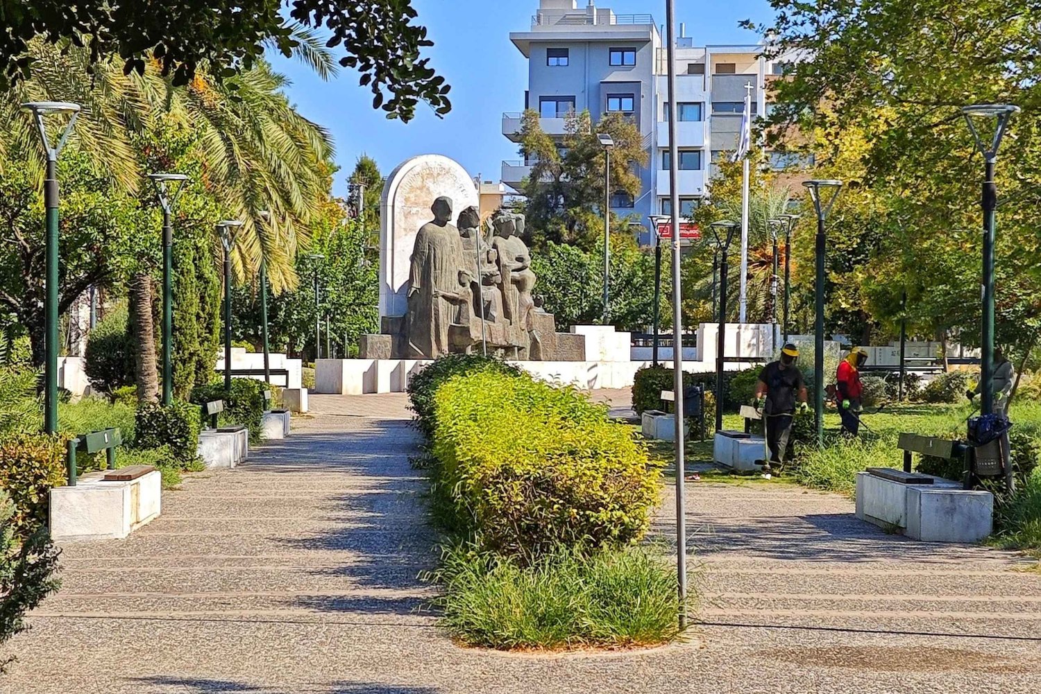 - Spaceruj po zielonych parkach, obok fontann i wzdłuż strumienia Podoniftis.