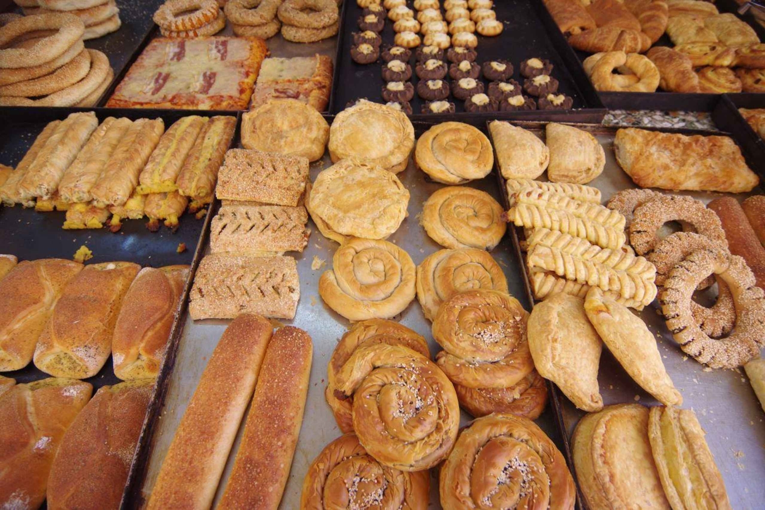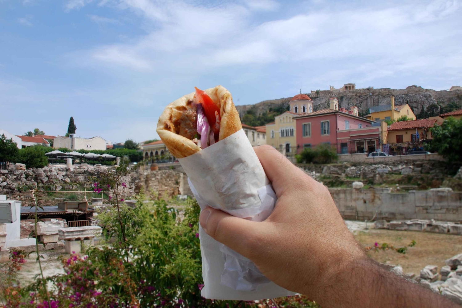 Embarque numa viagem gastronómica inesquecível por Atenas, onde irá saborear iguarias gregas icónicas enquanto mergulha na rica história e cultura vibrante da cidade. O teu passeio começa com um breve traslado até a Praça Omonia, onde receberás uma visão geral do itinerário do dia. De lá, darás um passeio tranquilo até a Praça Monastiraki, passando pela Prefeitura de Atenas, enquanto aprendes sobre a fascinante história da cidade. A tua primeira parada gastronómica será em uma padaria local, onde te deliciarás com uma deliciosa torta tradicional grega recheada com queijo feta e experimentarás o sabor único do autêntico café grego. Em seguida, visita o Mercado Central, um verdadeiro banquete para os sentidos. Enquanto passeias pelos corredores animados, vais estar rodeado pelos sons vibrantes dos vendedores e pelos aromas irresistíveis de produtos frescos e especiarias. Descobre o peixe mais fresco, carnes habilmente cortadas e uma variedade de queijos locais. (Opcional) Depois, delicia o teu paladar com uma seleção de azeitonas, cada uma com um sabor rico e salgado. A viagem continua num dos locais mais famosos de Atenas para degustação de mel, um negócio familiar com uma longa história. Aqui, vais aprender sobre o fascinante processo de produção do mel, da colmeia ao frasco, e desfrutar de uma degustação dos melhores méis da Grécia. Em seguida, siga para uma loja local onde poderá saborear deliciosos Loukoumades tradicionais e deliciar-se com iogurte grego cremoso regado com mel e coberto com nozes ou frutas frescas. O grand finale da sua aventura culinária apresenta um gyro de dar água na boca, com frango ou porco tenro servido em pão pita quente, acompanhado de vegetais frescos e um molho picante. Depois desta deliciosa viagem gastronómica, vais ter tempo livre para explorar as ruas animadas de Atenas. Mergulha na atmosfera local, descobre tesouros escondidos e desfruta da energia vibrante da cidade antes de concluir o teu tour, partindo com o apetite satisfeito e uma apreciação mais profunda pelas ricas tradições culinárias de Atenas.Includes
