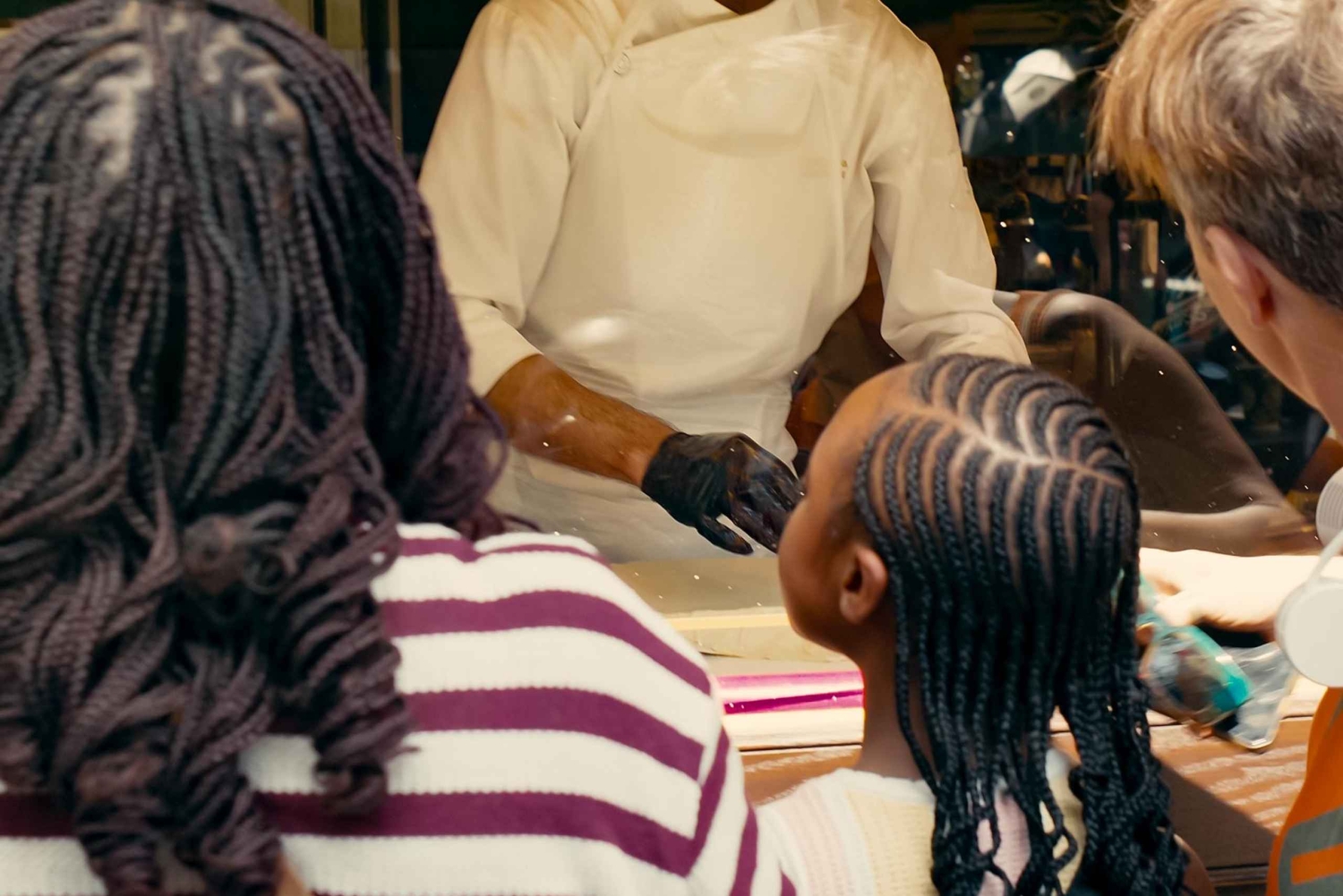 - Degustações: torta de queijo feta, azeitonas, loukoumades, iogurte, gyro.