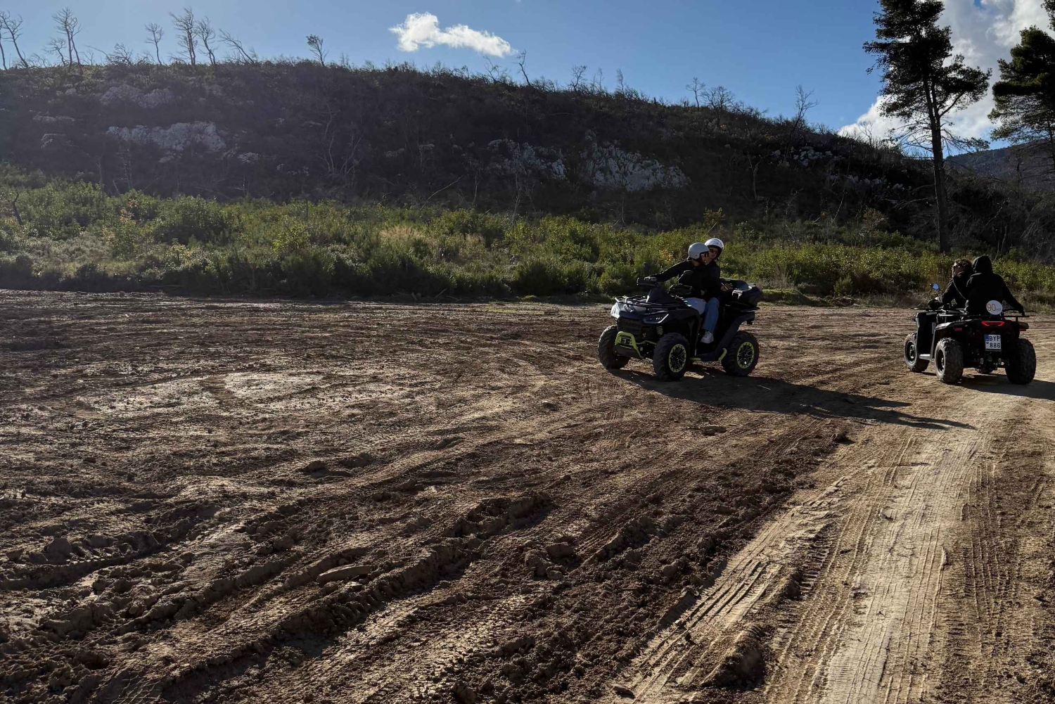 Esta experiência em pequenos grupos combina adrenalina, natureza e paisagens de tirar o fôlego, perfeita para principiantes e cavaleiros experientes. Estes trilhos oferecem um passeio suave e agradável, com muitas paragens para miradouros, clareiras florestais, edifícios antigos de pedra e locais para fotografias panorâmicas com vista para a Ática. Dependendo do grupo, exploramos prados escondidos, corredores florestais e recantos naturais tranquilos que a maioria dos visitantes nunca vê. O teu passeio começa com uma breve sessão de segurança e prática de condução. Quando todos se sentirem confortáveis, vamos para a floresta de pinheiros, seguindo uma mistura de trilhos off-road e com vista para a montanha, rodeados de ar fresco e vegetação. O nosso primeiro destaque é o tranquilo Lago Beletsi, um encantador lago de estilo alpino conhecido pelas suas águas calmas, pequenas pontes de madeira e patos e cisnes residentes. É o sítio ideal para tirar fotos e fazer uma pausa relaxante na natureza. Depois, continuamos em direção às amplas rotas florestais e caminhos abertos em redor de Tatoi, uma área rica em beleza natural e vida selvagem. Estes trilhos oferecem um passeio suave e agradável, com muitas paragens para miradouros, clareiras florestais, edifícios antigos de pedra e locais para fotos panorâmicas com vista para a Ática. Dependendo do grupo, exploramos prados escondidos, corredores florestais e recantos naturais tranquilos que a maioria dos visitantes nunca vê. Opcional: podes adicionar uma paragem para lanche/comida, se quiseres. Esta experiência é a combinação perfeita de aventura, diversão ao ar livre e paisagens únicas. Uma forma inesquecível de descobrir a natureza que rodeia Atenas!Includes