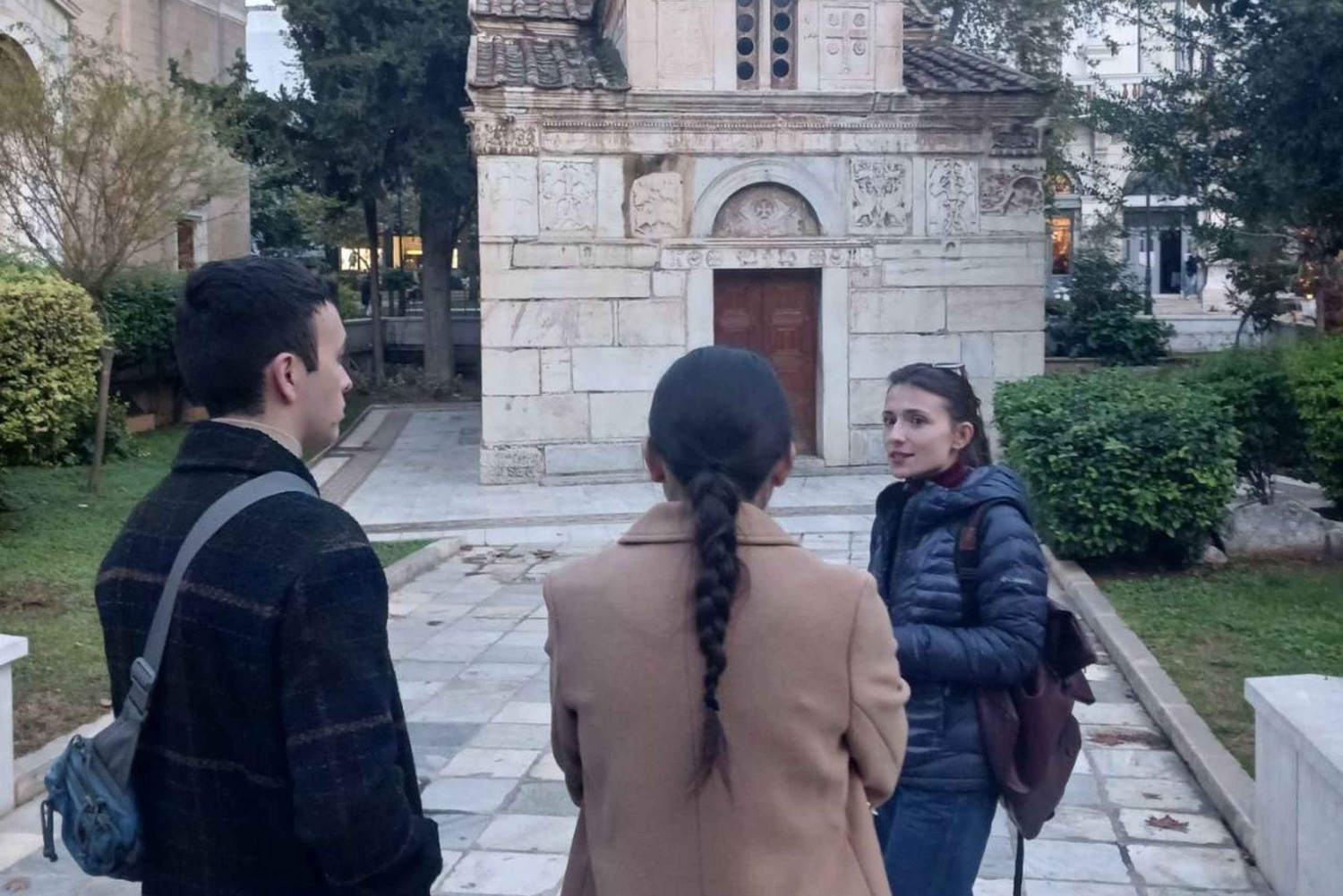 Встретьтесь с гидом днем или вечером на площади Синтагма, чтобы познакомиться с древней частью Афин в ходе 4-часовой пешеходной экскурсии в небольшой группе. Вы начнете с просмотра знаменитой «смены караула», которая происходит каждый час перед зданием греческого парламента и Могилой неизвестного солдата. Оттуда вы пройдете мимо небольших кафе, пабов и ресторанов, полных жизни и энергии, которые порадуют вас своими уникальными цветами и традиционной архитектурой. Вы также сможете полюбоваться видом на освещенный Парфенон и Акрополь, слушая звуки Латерна, традиционной музыкальной шкатулки, на которой играют местные музыканты. Продолжите путь по живописным узким улочкам старейшего района Афин, знаменитой Анафиотики, которая привносит дух Кикладских островов в самое сердце города. Прогуливаясь по окрестностям, вы увидите древнегреческий и римский форум, а также знаменитую и хорошо сохранившуюся Стоа Атталоса. Ваш гид расскажет вам все подробности о древней и современной истории, а затем вы отправитесь в традиционную греческую таверну на ужин и дегустацию вкусных блюд местной кухни.Includes