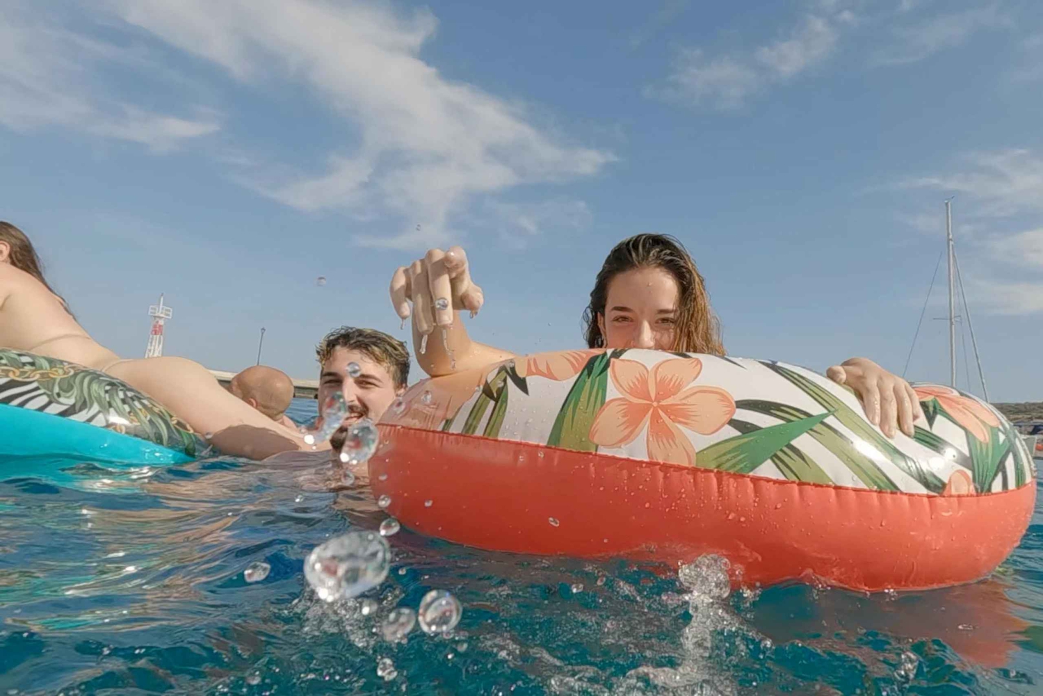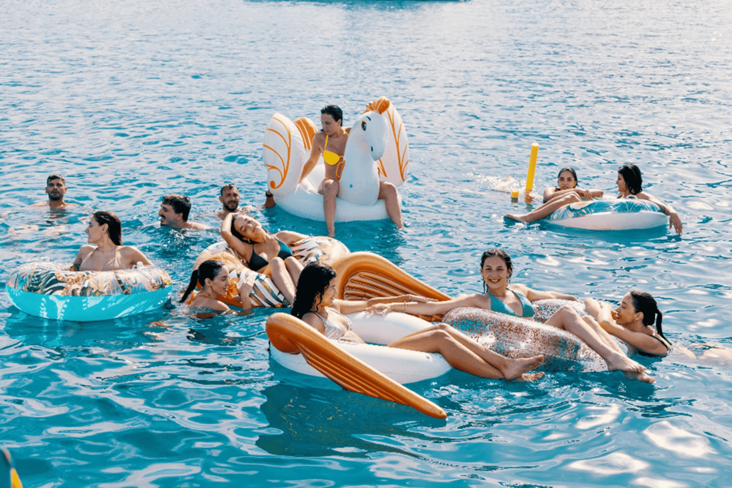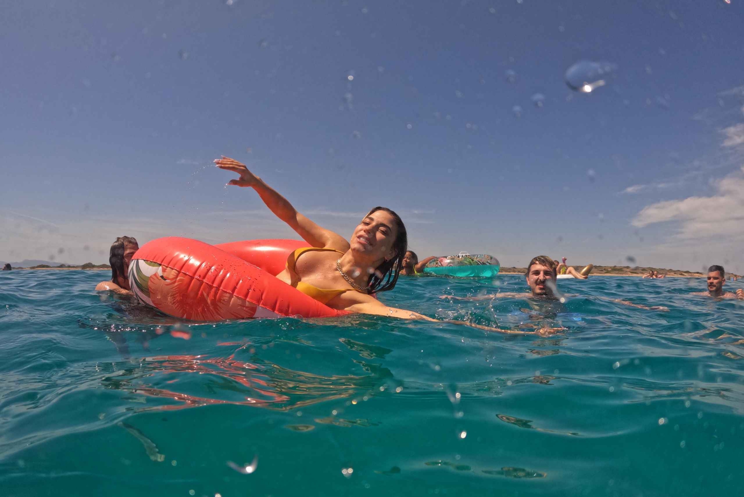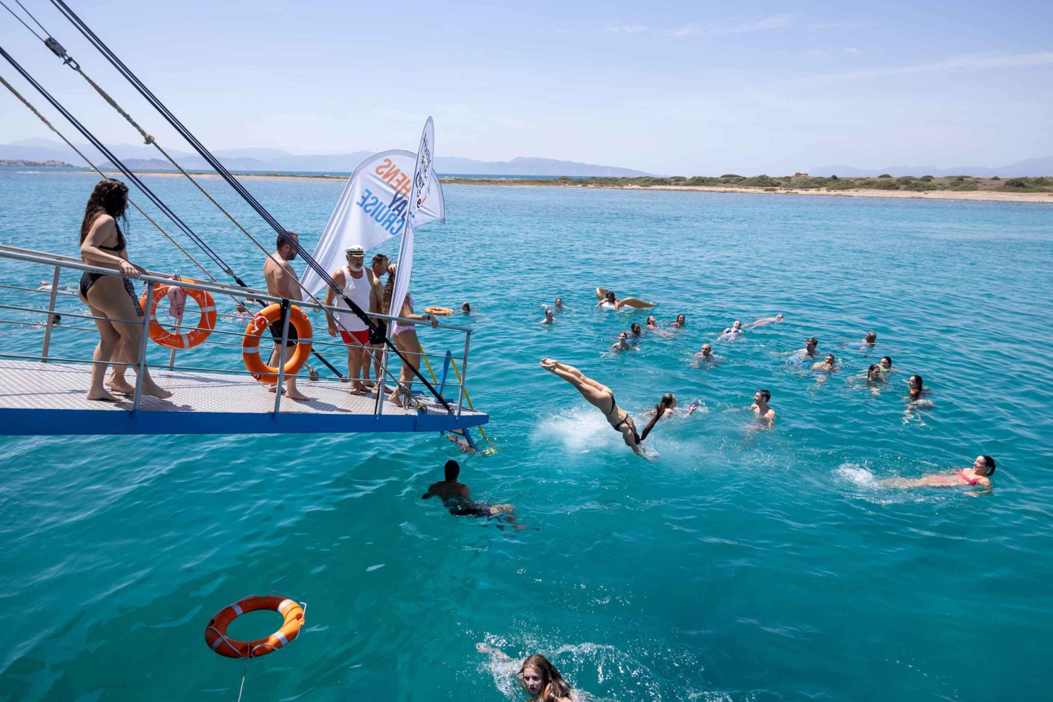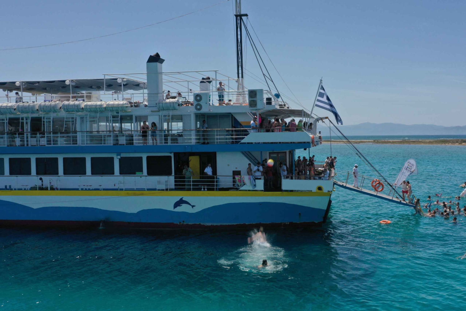 Lyxig kryssningsbåt med solstolar, sittsäckar och duschar Professionell DJ live Grekisk lunchbuffé (vegetariska och veganska alternativ) Obegränsat med vin, läsk, filterkaffe och vatten Uppblåsbara leksaker och nudlar Lunchbuffé med medelhavsmat Två fullt utrustade barer Kapten, besättning och bränsleImportant Information
