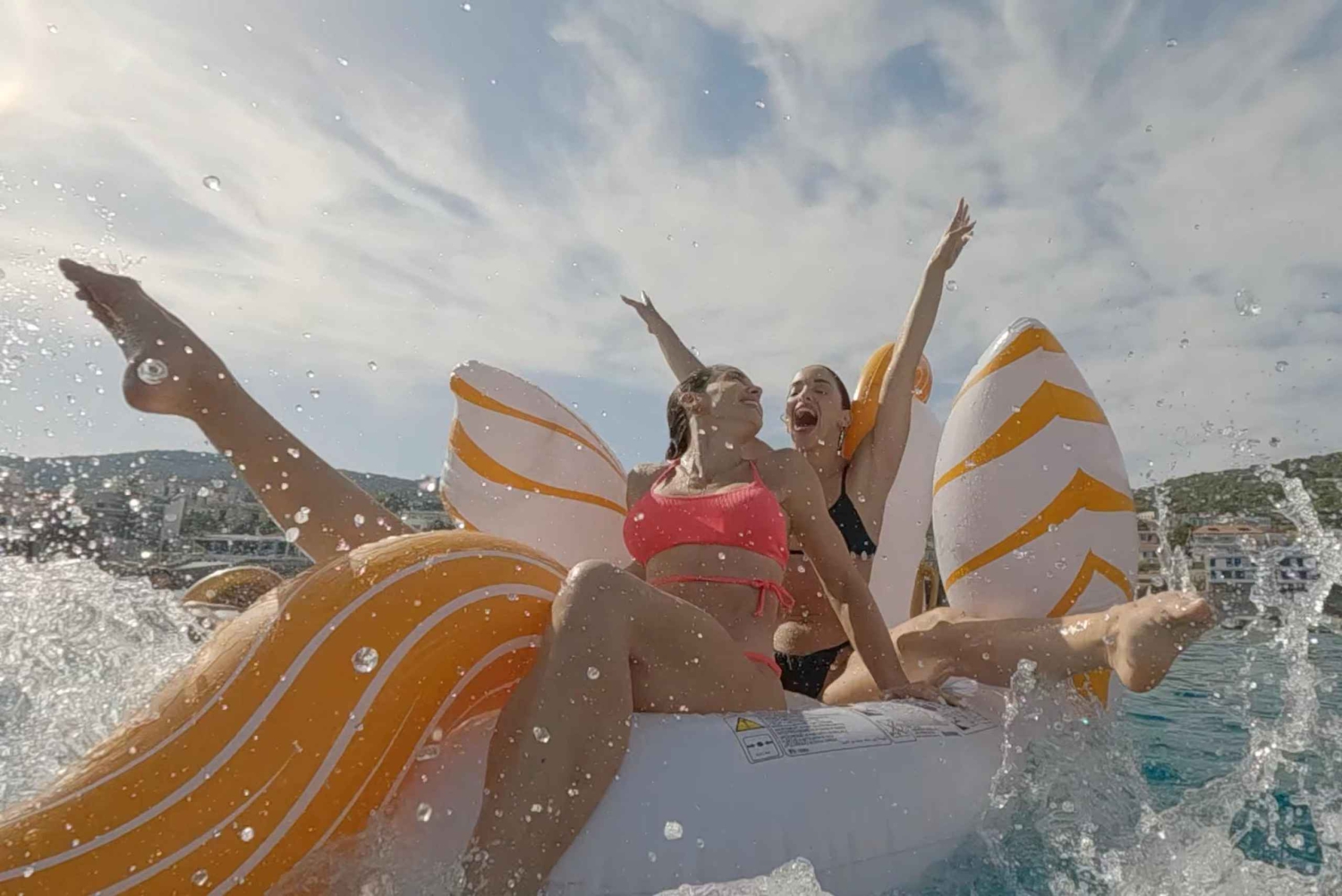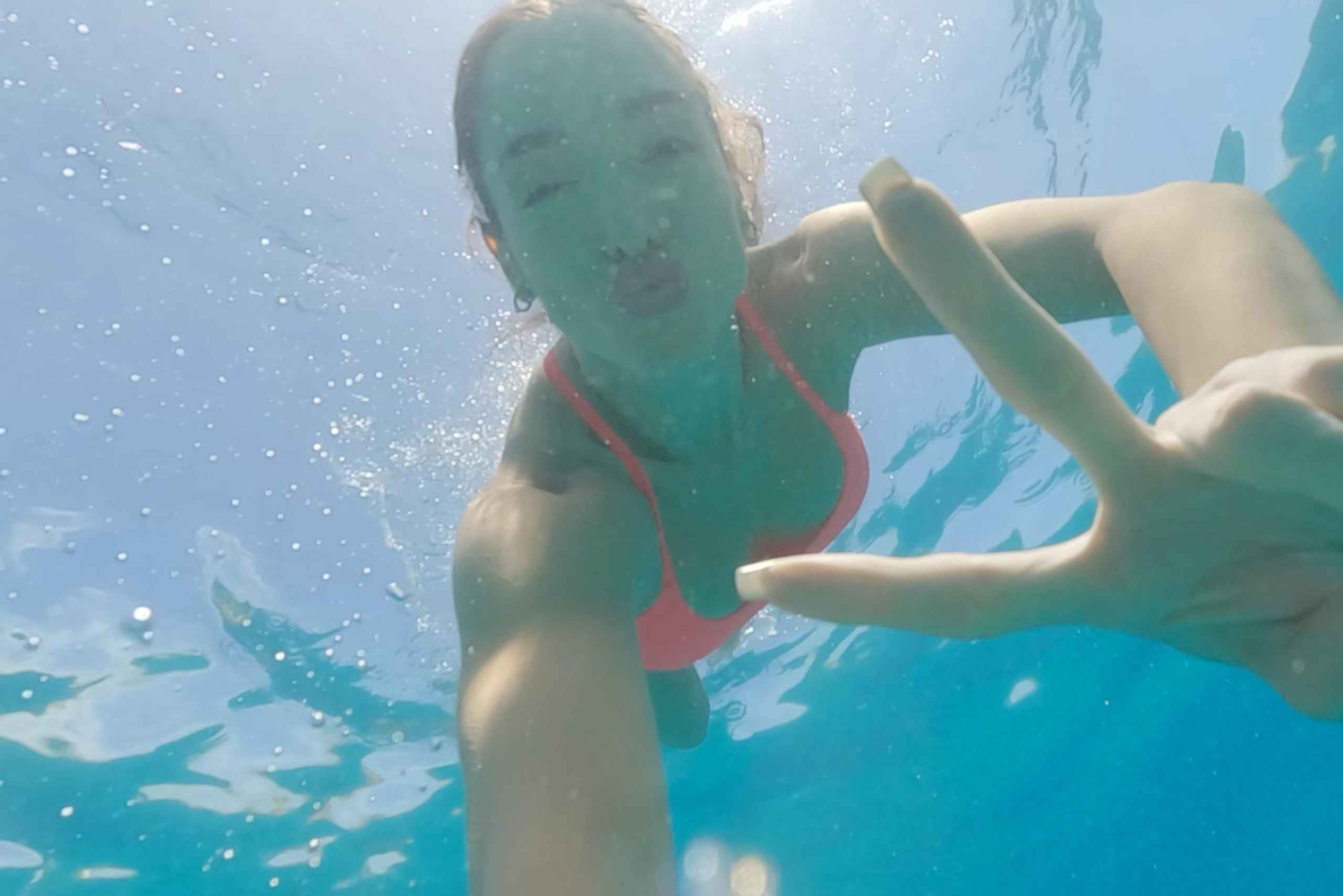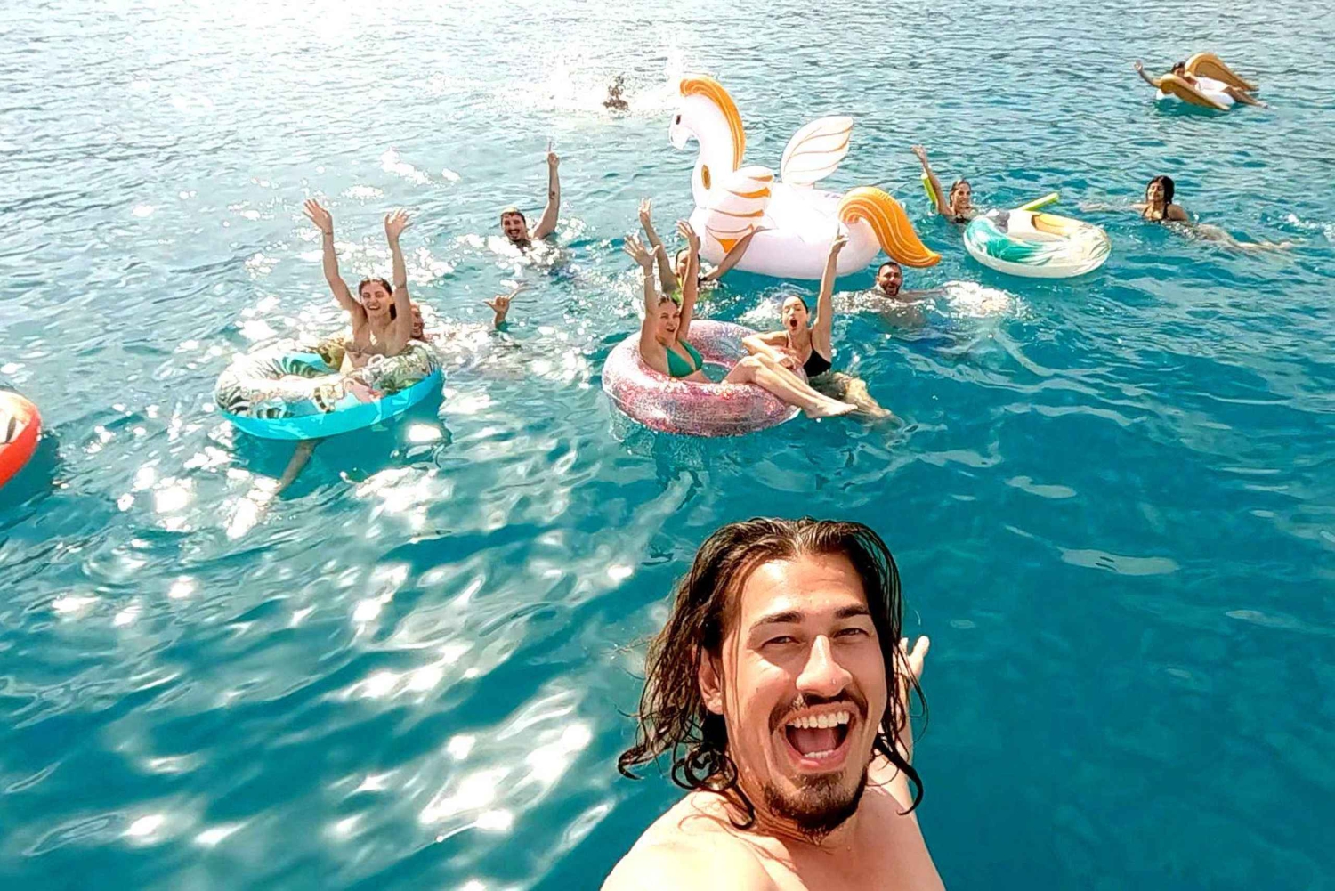 Lämna staden bakom dig när vår rymliga kryssare glider ut från Aten Marina och följer den soliga Rivieran mot den pinjeklädda ön Agistri. Hitta din favoritplats – en sittsäck, solstol eller skuggig soffa – medan DJ:n spelar upp en uppiggande semesterlåtlista och besättningen berättar om dagens planer. Frihetsstopp i Agistri. Kasta ankar vid glittrande turkosa vikar där du kan dyka direkt från däck, ta med en snorkelmask för att se sjöstjärnor eller hyra en elcykel för att utforska bilfria vägar som doftar av tall och vild timjan. Tillbaka ombord väntar en färsk grekisk buffé: ugnsbakad moussaka, veganska gigantes, saftiga souvlaki-spett, krispig bysallad, lokal fetaost och varm pita. Kombinera din måltid med obegränsat med husets vin, läsk, filterkaffe eller kylt vatten från den öppna baren. Metopis hemliga lagun är nästa stopp – en ö så liten att den känns som din egen privata lekplats. Dyk från badplattformen, flyta på roliga uppblåsbara leksaker eller paddla en noodle genom kristallklart vatten som skiftar från smaragdgrönt till safirblått. Håll utkik: här dyker ofta havssköldpaddor upp till ytan. En kort seglats tar dig till färgglada Aegina. Strosa längs hamnens neoklassiska fasader, smaka på världsberömda pistaschmandlar eller besök det antika templet Aphaia för en panoramautsikt över Saroniska viken. Föredrar du havet? Stanna ombord och sola eller njut av ett glas vin till på däck. När vi seglar tillbaka mot Aten målar den gyllene timmen himlen. DJ:n höjer energin och förvandlar övre däck till ett dansgolv under bar himmel – tänk dig silhuetter i solnedgången, klirrande glas och doften av saltstänk på varm hud. Ta bilder mot en bakgrund av eldigt orange och djup koboltblått, och koppla sedan av i en sittsäck medan stadens ljus dyker upp vid horisonten. Vad gör denna resa så speciell? Tre noggrant utvalda öar, obegränsade drycker, en generös buffé, live-DJ och gott om tid för att simma, utforska eller bara ta det lugnt. Alla besättningsmedlemmar är certifierade proffs och säkerhetsutrustning, inklusive flytvästar och flytkroppar, tillhandahålls. Är du redo att byta asfalten mot paradiset? Klicka på 'Kontrollera tillgänglighet', packa badkläderna och följ med på den ultimata sim- och festkryssningen i Aten!Includes