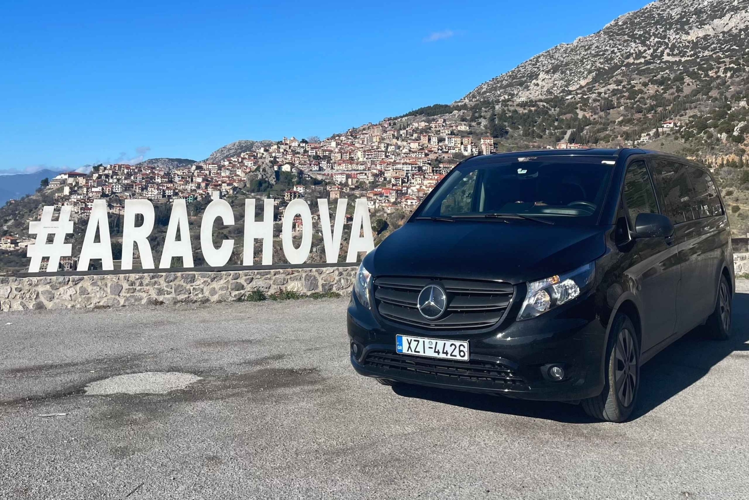 Privat transport från/till Aten (inklusive vägtullar och bränsle). Professionell chaufför. Hjälp med skidpass och utrustning. Après-ski-stopp. Utrymme för personlig skid- eller snowboardutrustning – meddela hur många skidor eller brädor du kommer att ta med.Important Information